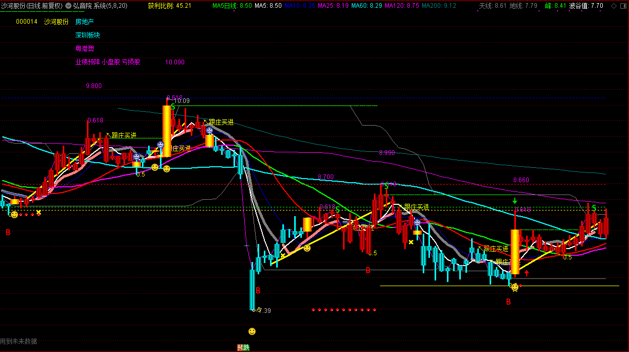通达信弘音院系统公式 趋势轨道波段炒股指标主图 源码 图示
