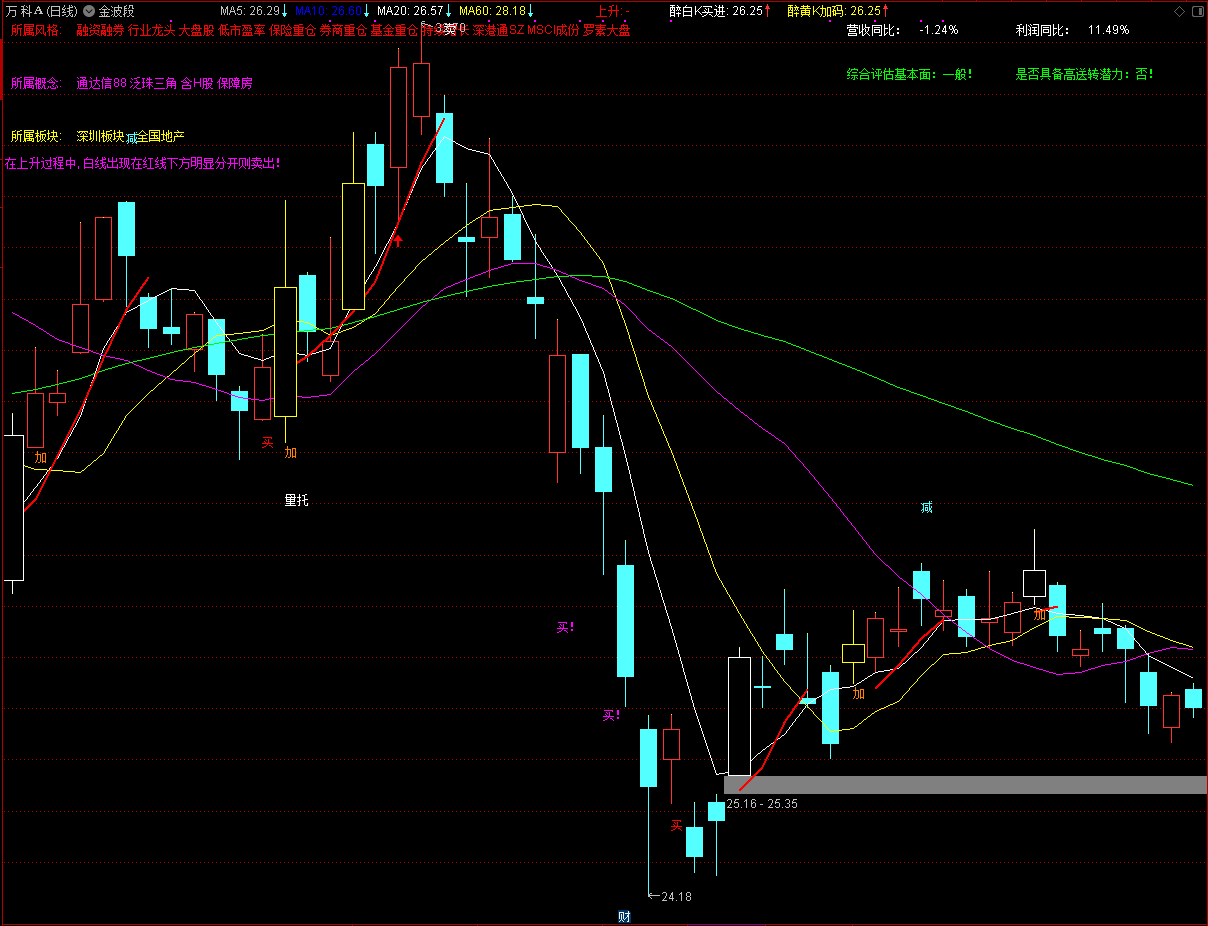 出现“买”字提示可关注“加”追涨时机,红色往上并有红色箭头提示上涨趋势