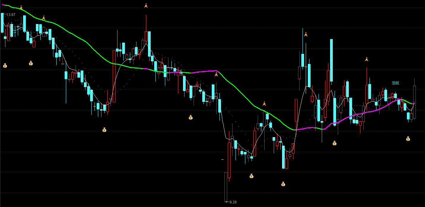 (炒股高手常用抓涨停紫进绿出线主图指标源码公式)