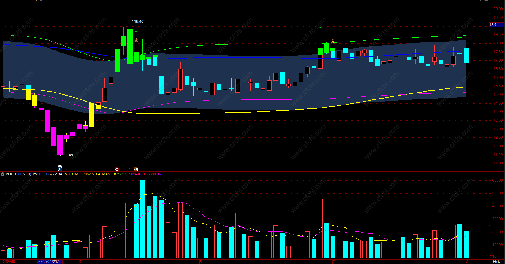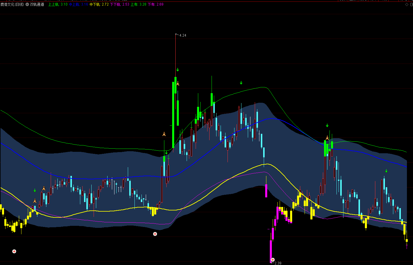 具体操作策略:不打算追高就可以规避掉一些风险。从短线投机角度思考,k线冲高正好是股民离场时机,所以,结合轨道指标公式坚持双低“低股价+低走势”的策略,采取低吸高抛的手段赚取价差。例如分析自己持仓的股票走势,价格自低而起,上涨至下降通道上轨受到压制开始回落。