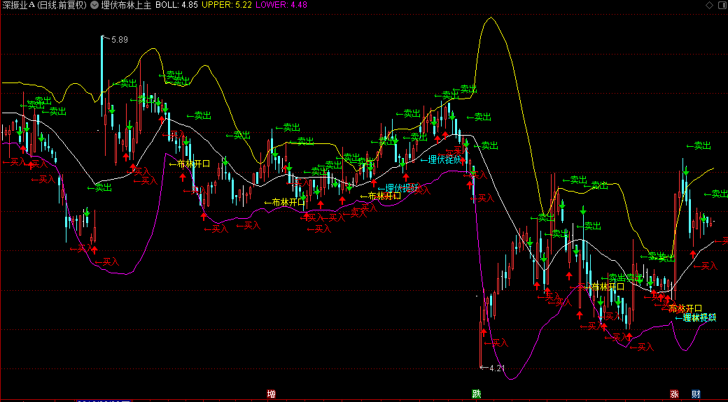 布林开口赋值:0.5上穿DD=30日内DD的最低值