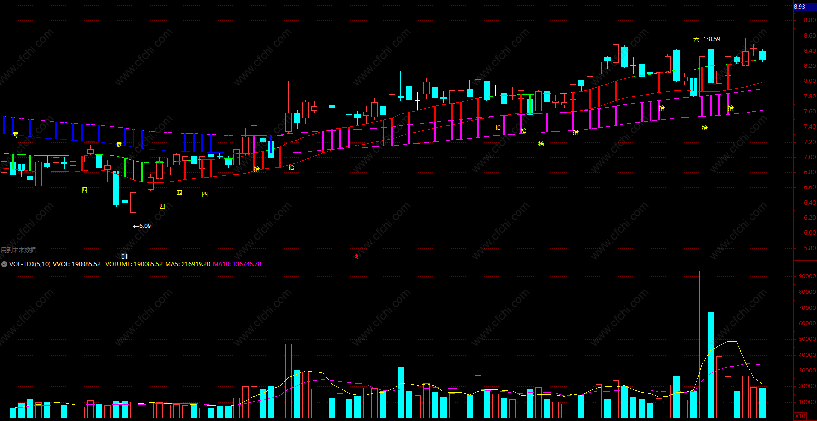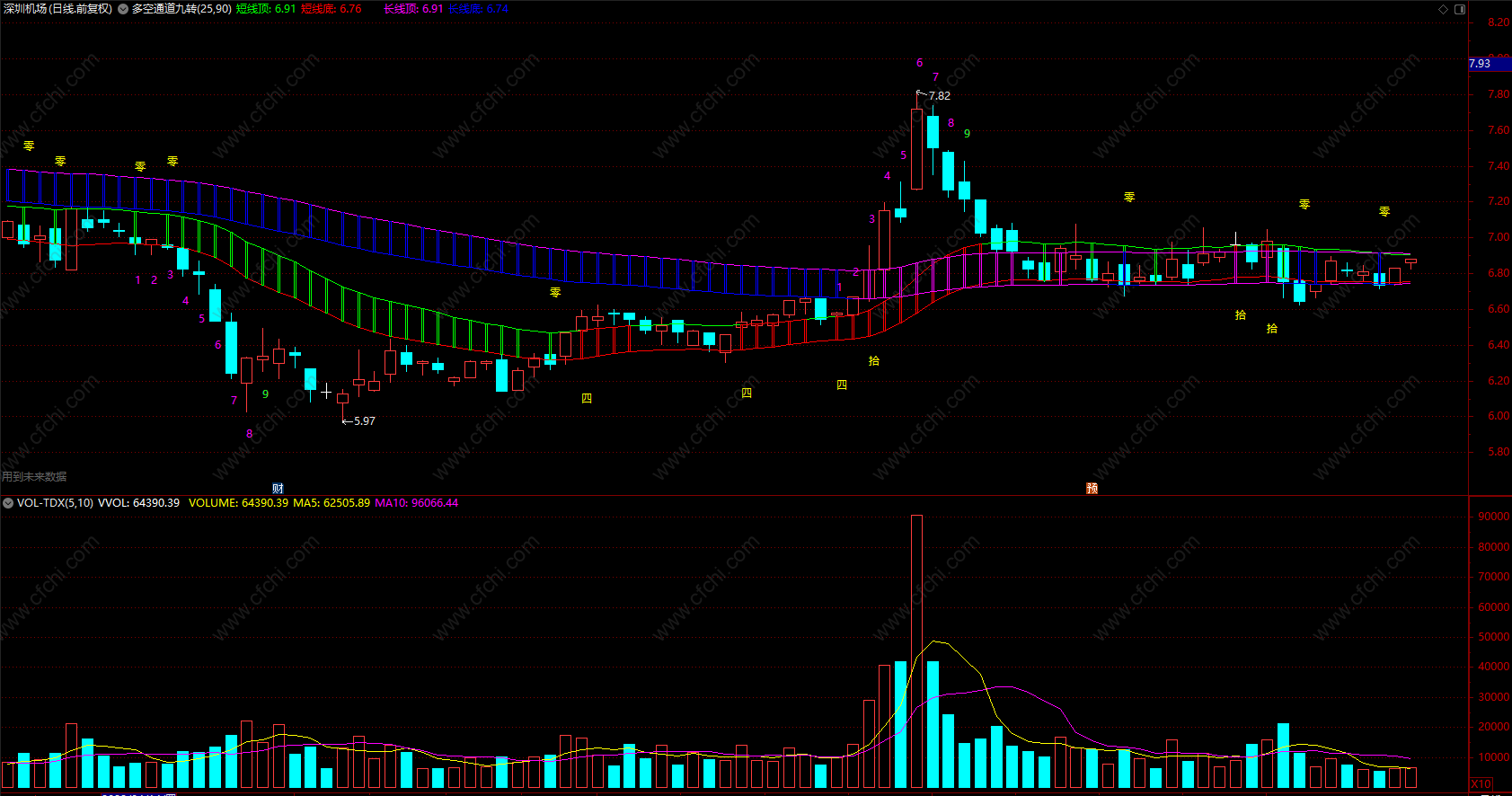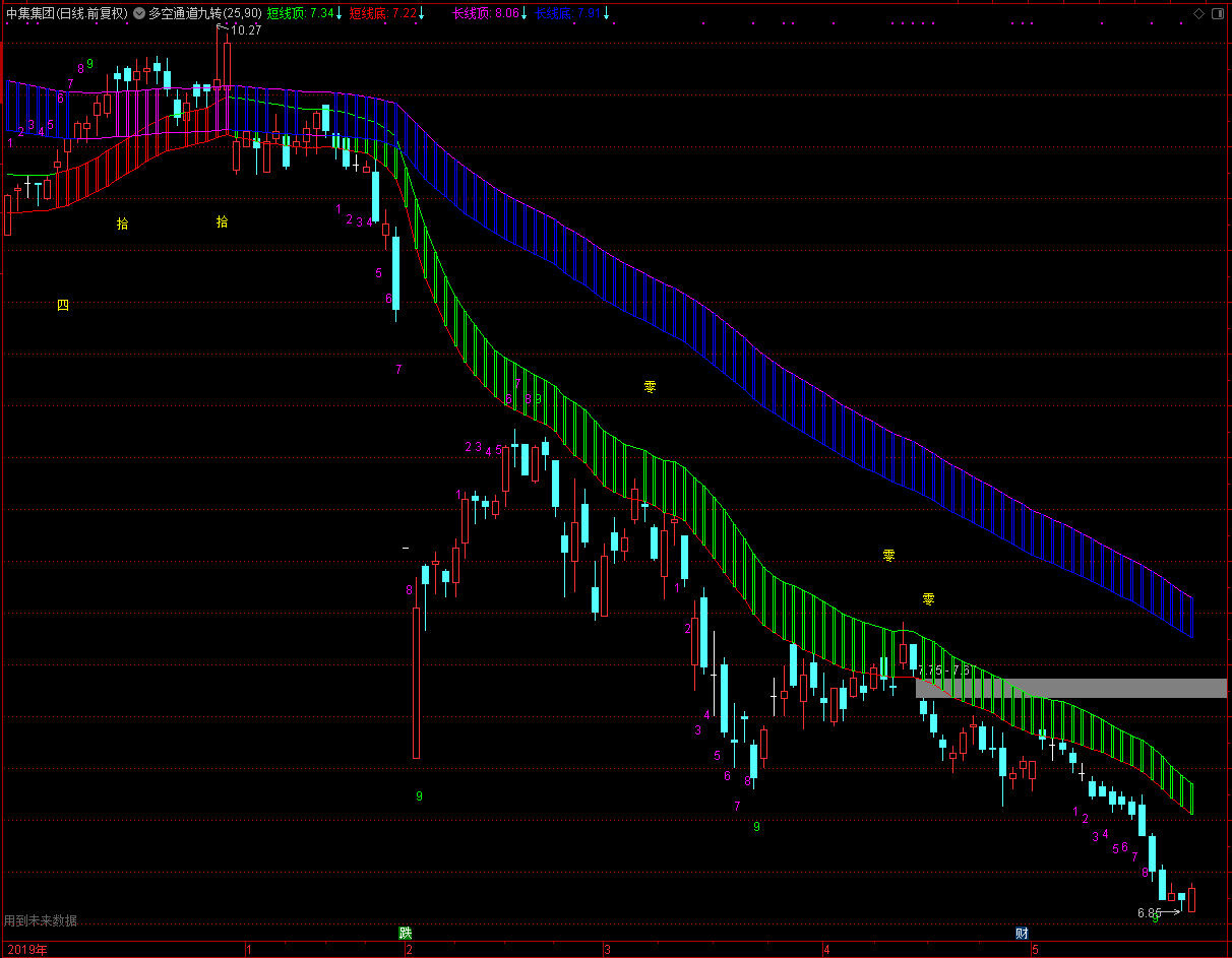 大盘确定仓位,个股觉得战场,通达信多空通道九转指标公式(主图)