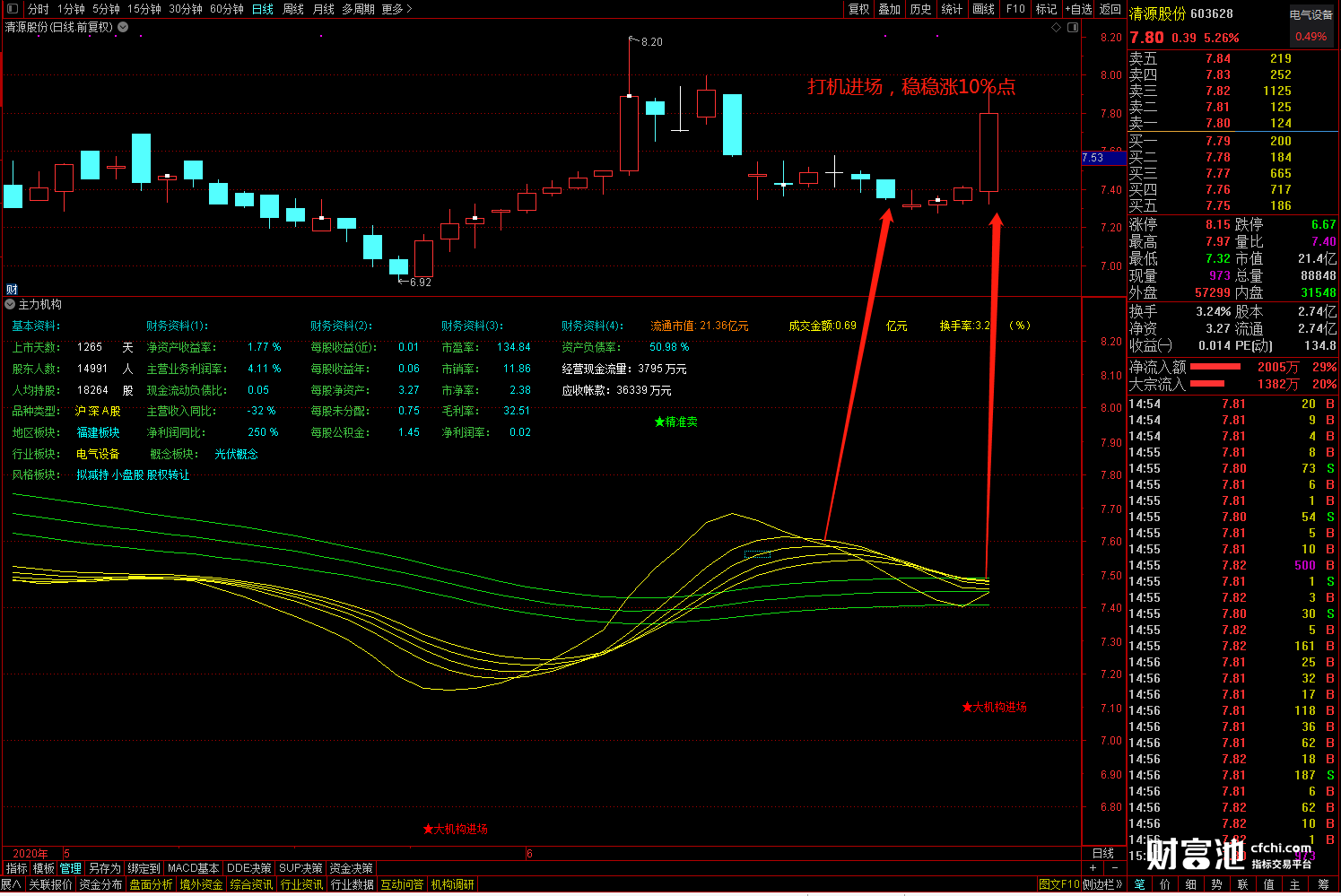 主力建仓抄底疯狂赚几十点,通达信主力机构指标公式(主图,源码)