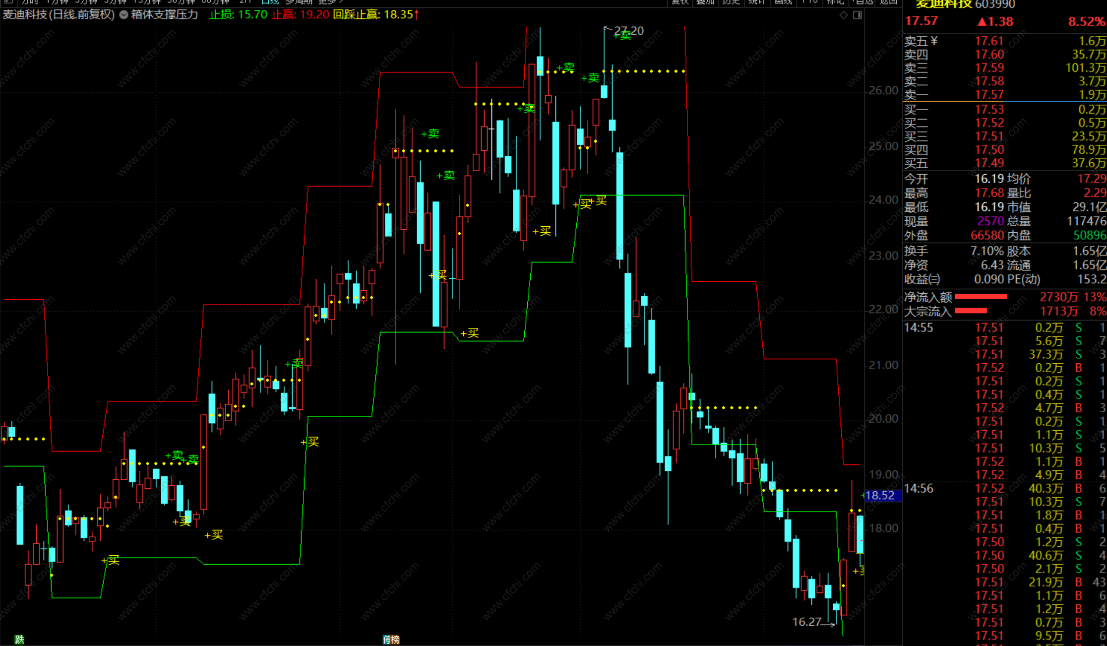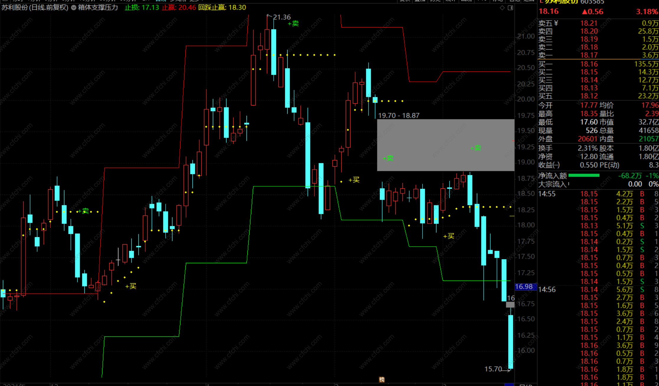 k线支撑位和压力位买卖点提示 通达信箱体支撑主图选股指标