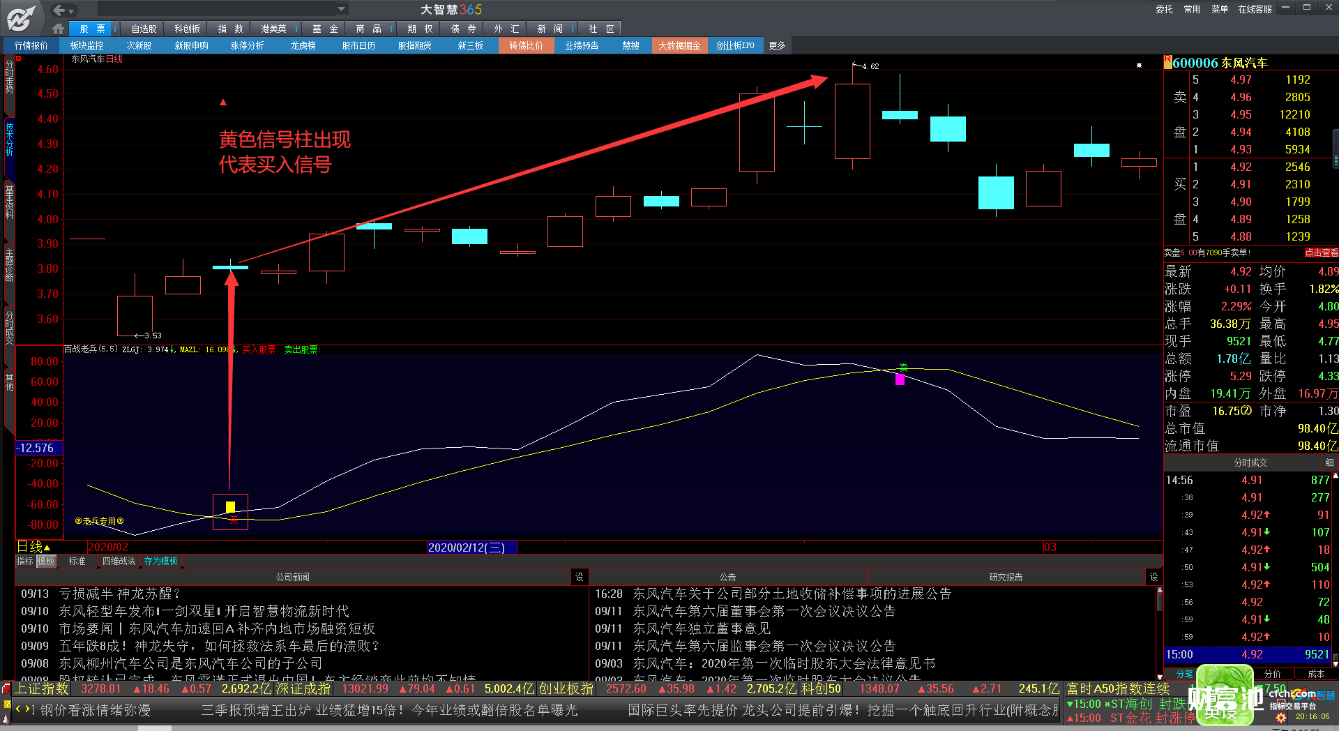 黄色信号代表买入信号,看到这个信号出现,不用考虑,买入即可。