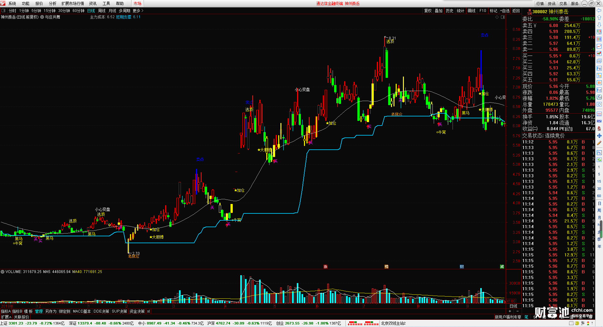 (与庄共舞 主图指标 买卖提示 无加密 无未来函数 无引用dll 顶底提示 老鼠仓)