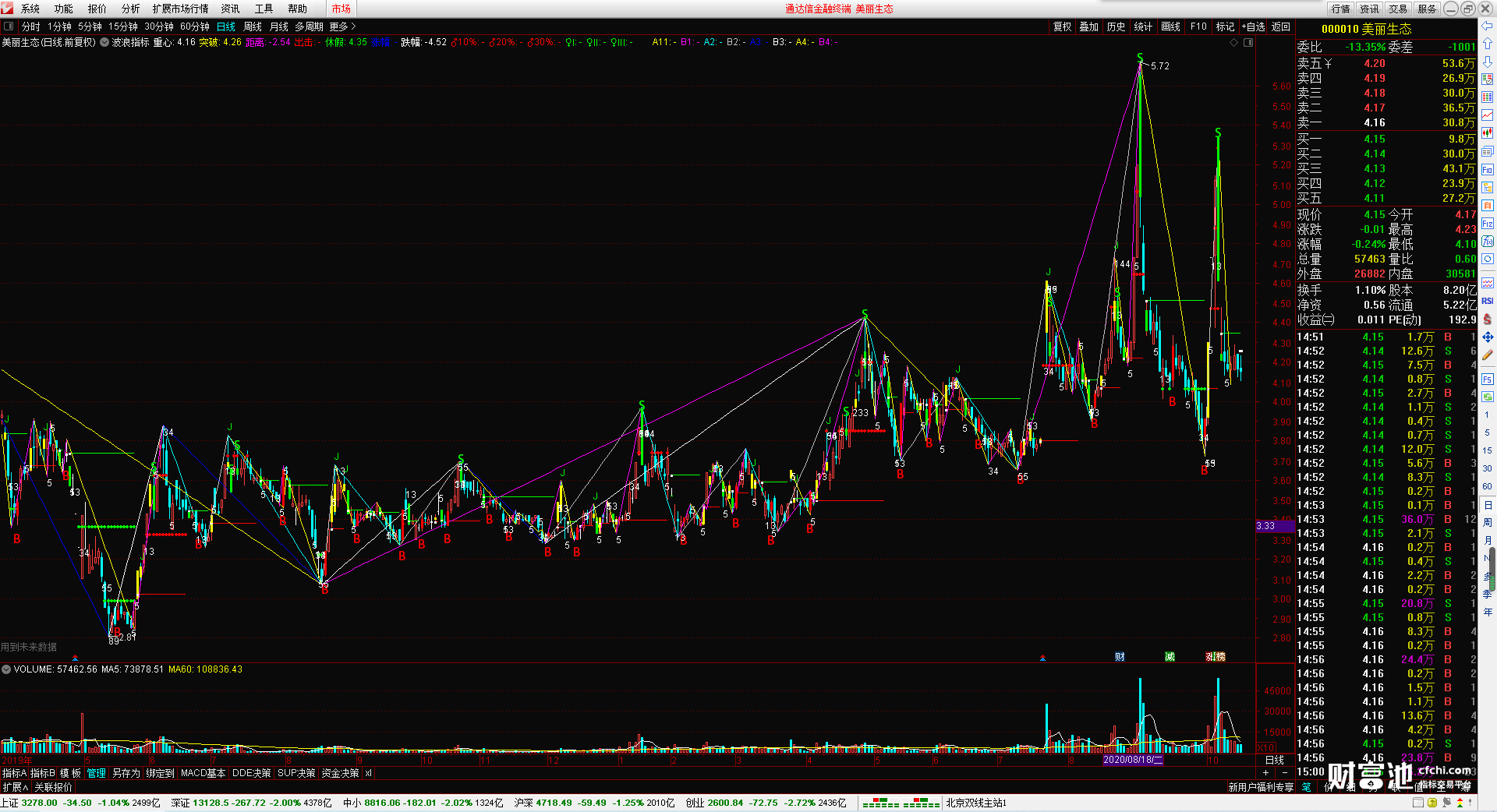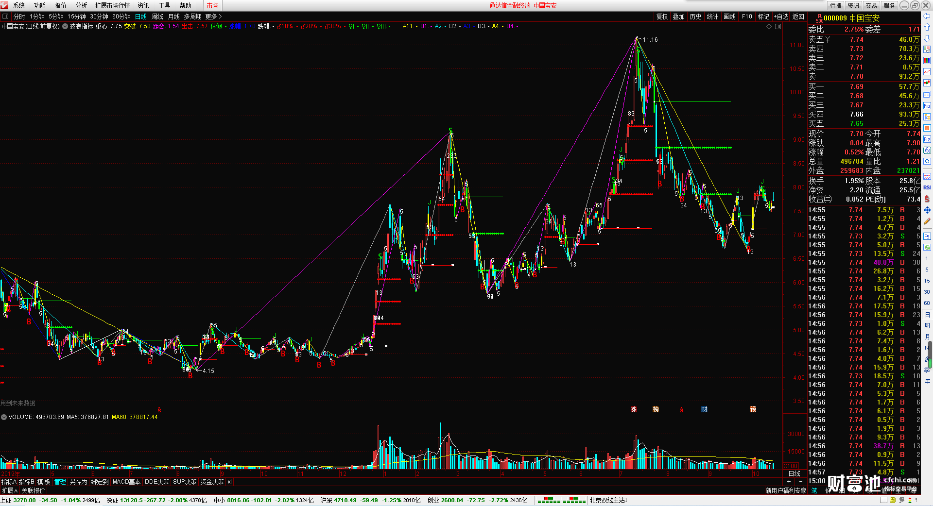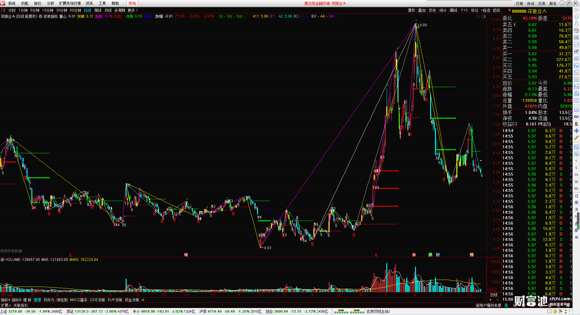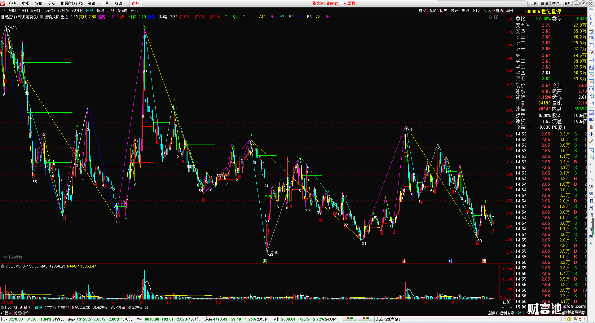 (波浪指标 无加密 无引用dll 波浪画线 时间之窗 )