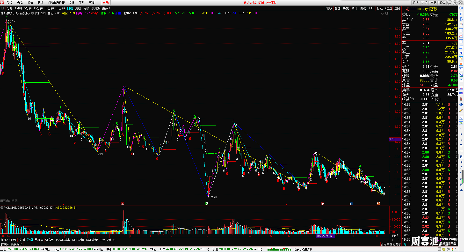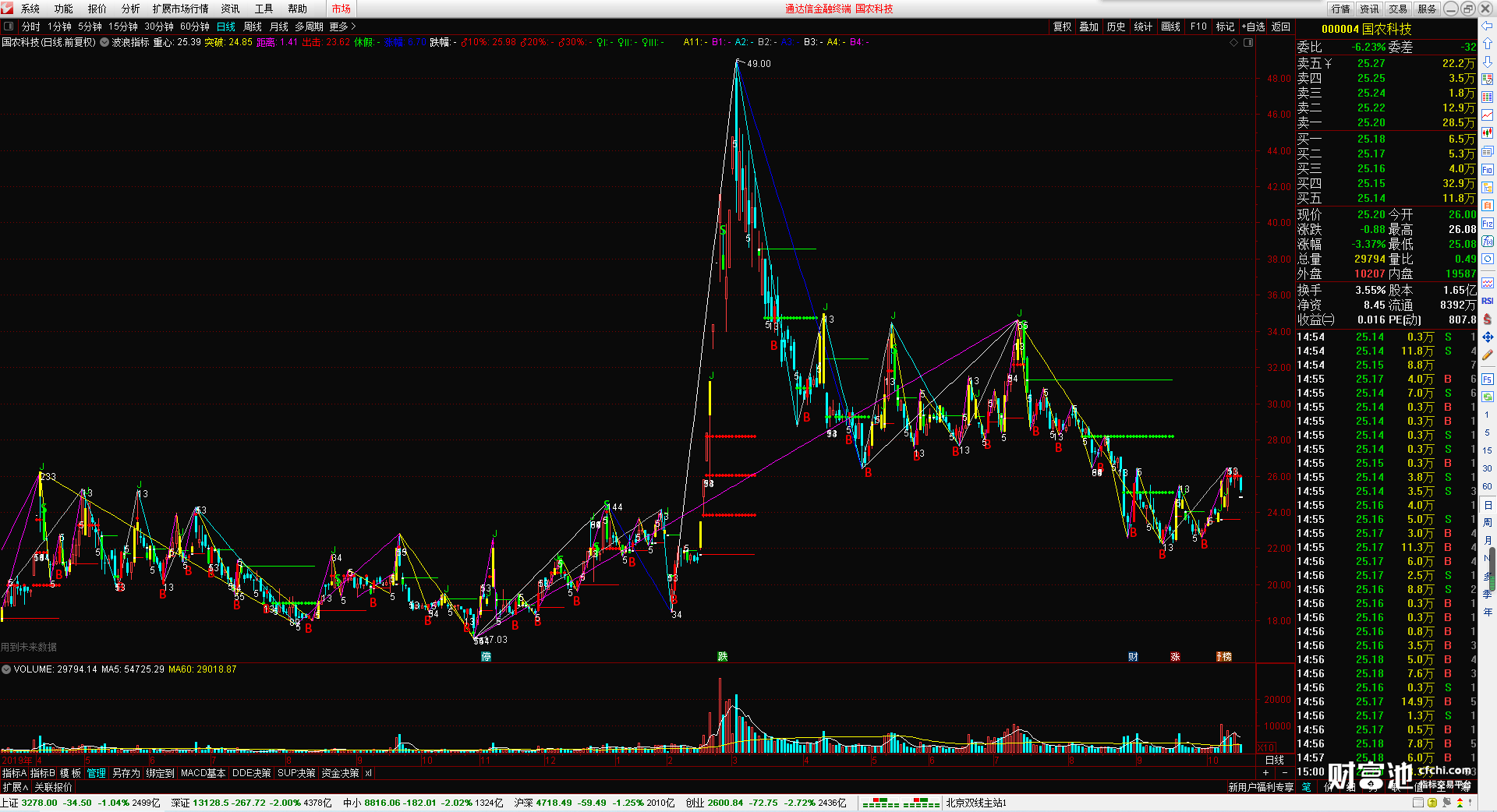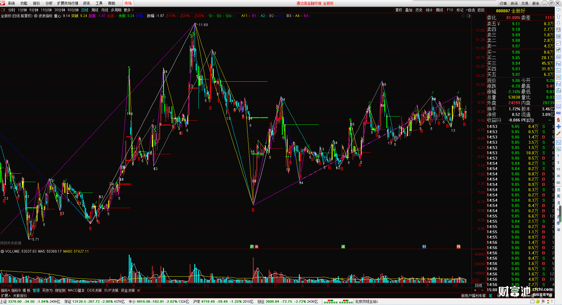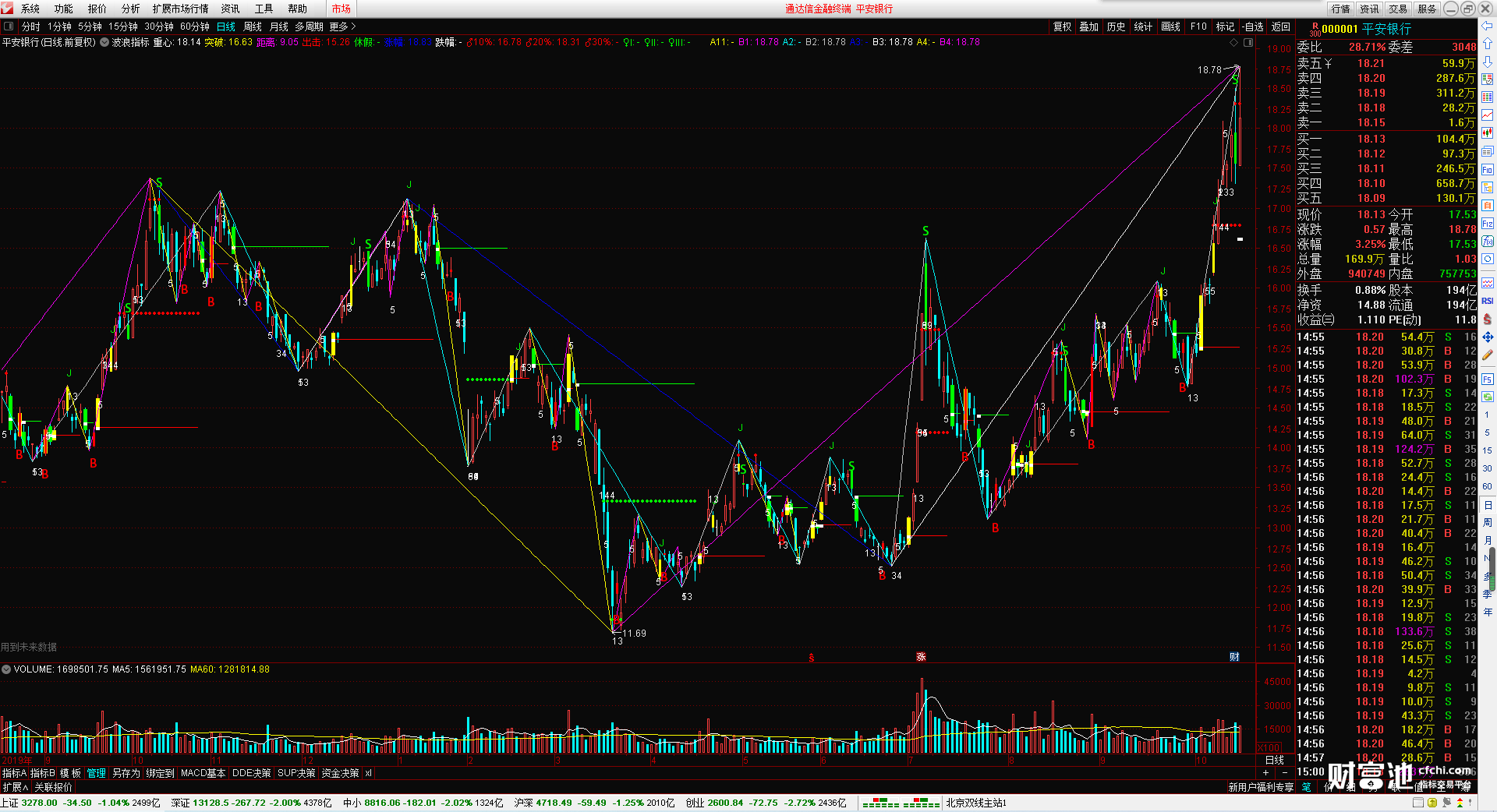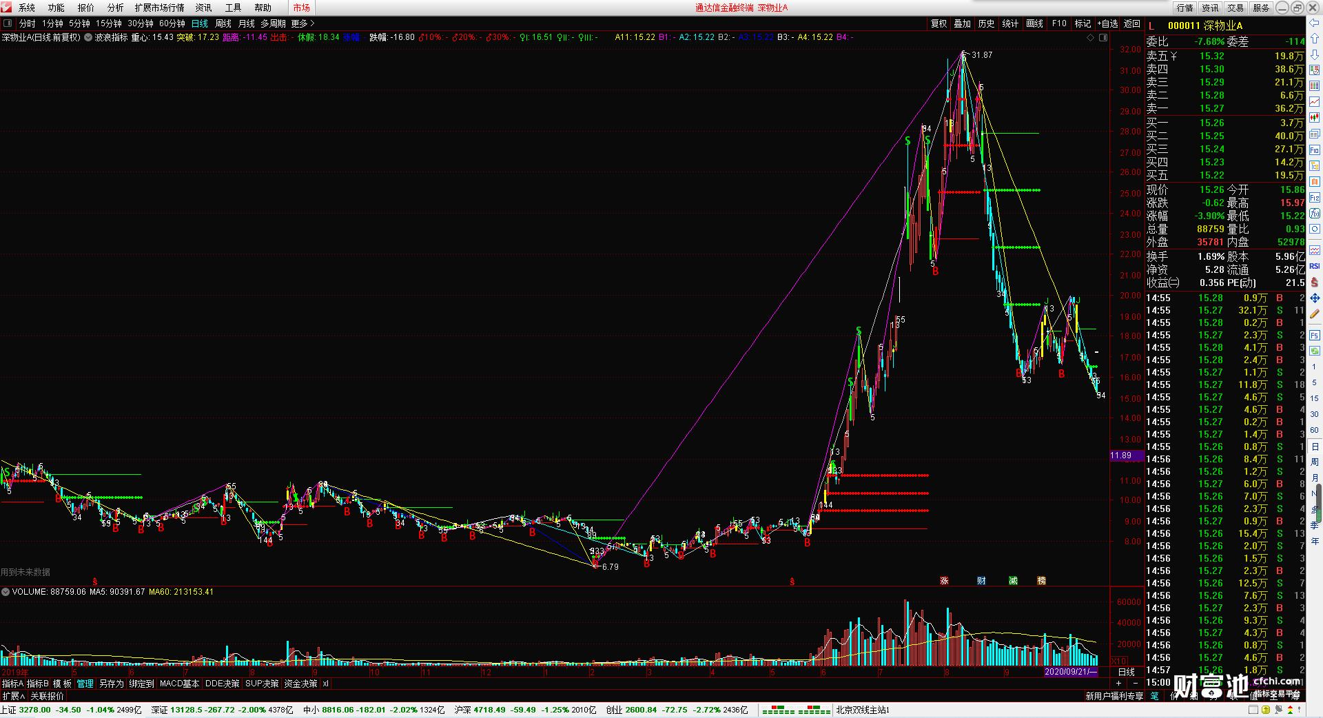(波浪指标 无加密 无引用dll 波浪画线 时间之窗 )