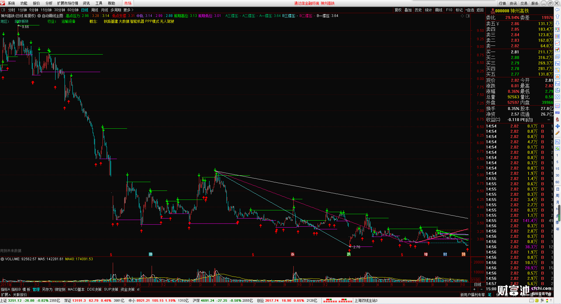 (自动画线主图 无加密 无引用dll 自动画支撑压力线 趋势线 )
