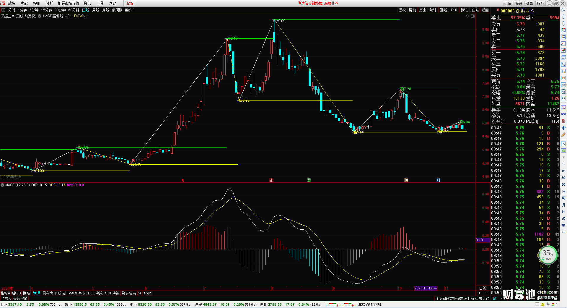 根据macd指标判断股价走势的高点位置与低点位置,并且在最高位置提示顶最高价,在最低位置提示底最低价,