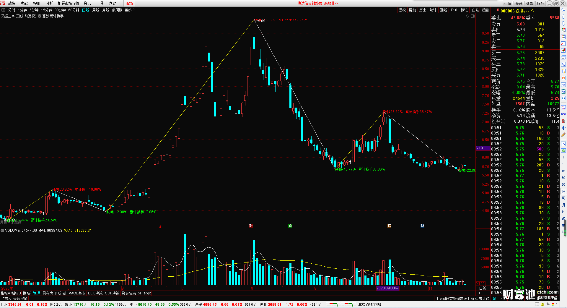 (涨跌累计换手 无加密 无引用dll 高低点涨幅累计换手)