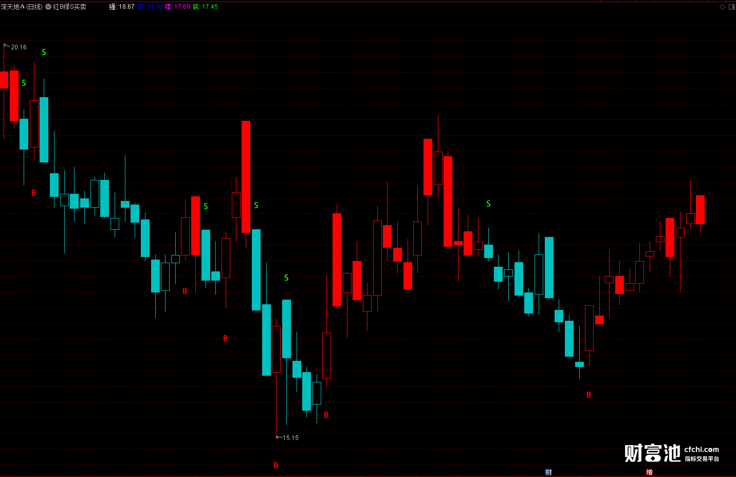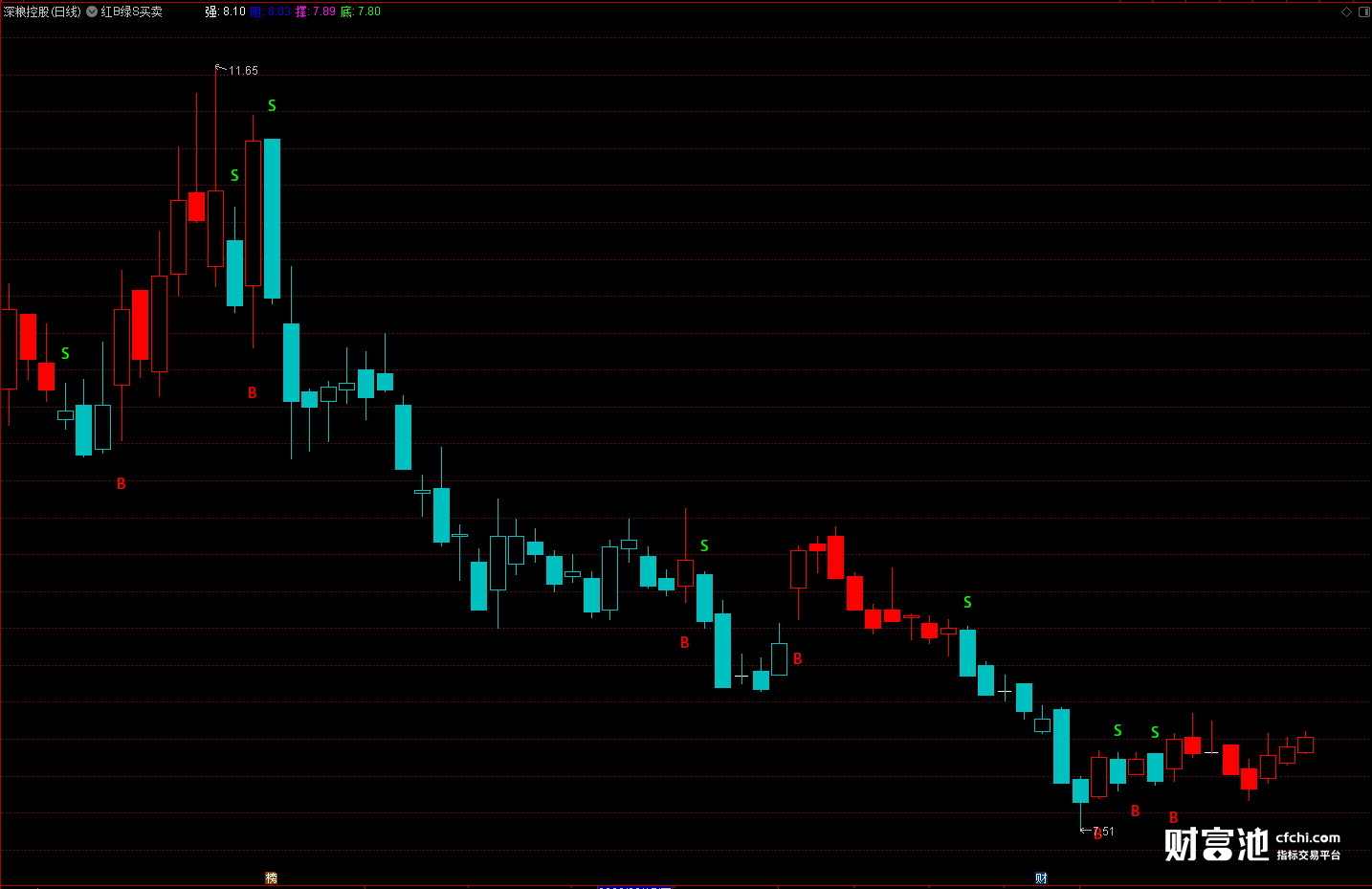 相反,当我们看到绿色的S的时候,代表公式预测之后股票会下跌,这时候可以考虑慢慢放出股票。