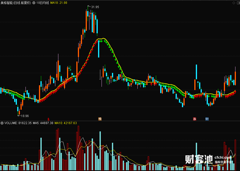 (「翔博精选指标」18日均线趋势操盘主图指标,多空一目了然)