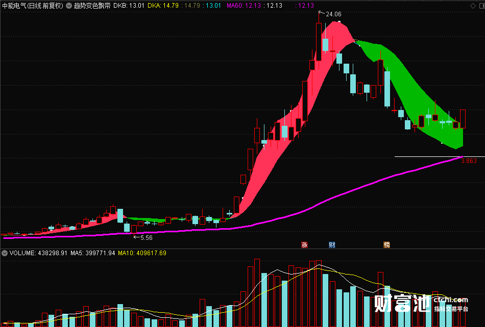 (「翔博精选指标」趋势变色飘带,趋势类公式(通达信公式 主图 测试图))
