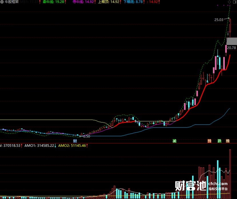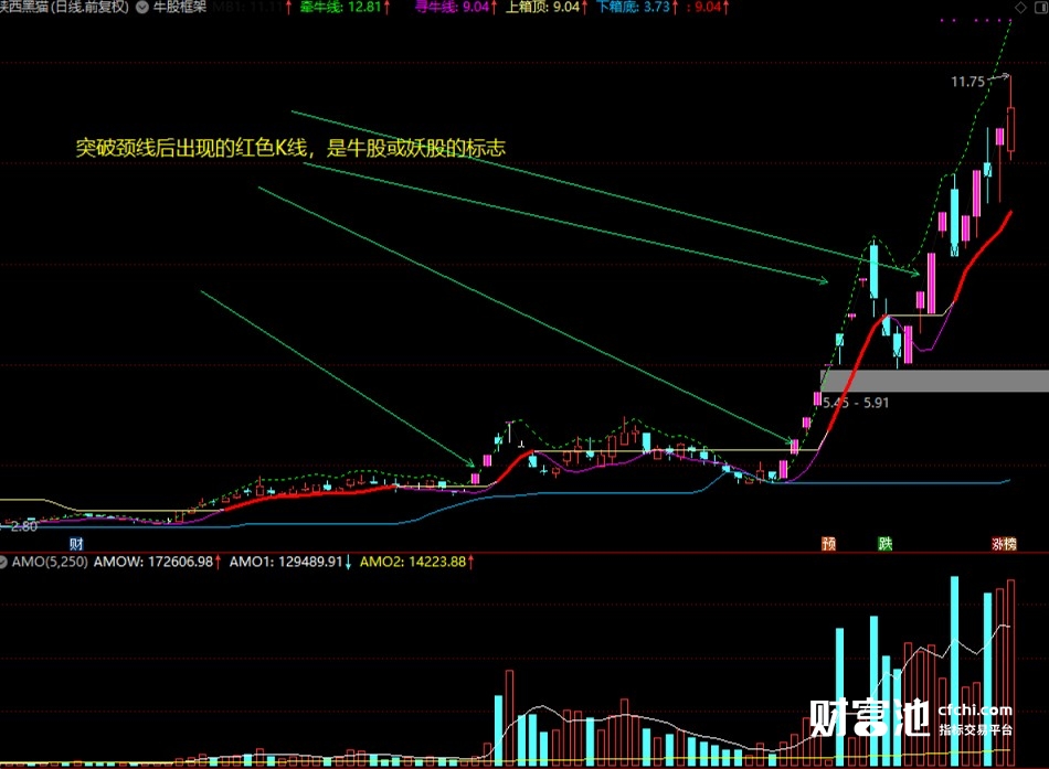 (大师廷进系列:【牛股框架】主图,任何牛股妖股都逃不过此指标的框定,牛线突破颈线,K线站稳,抓牛捉妖)