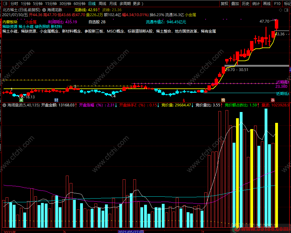 (海阔龙脉主图,集万般宠爱于一身,概念属性、重要压力突破、缠论波浪。 [通达信] )