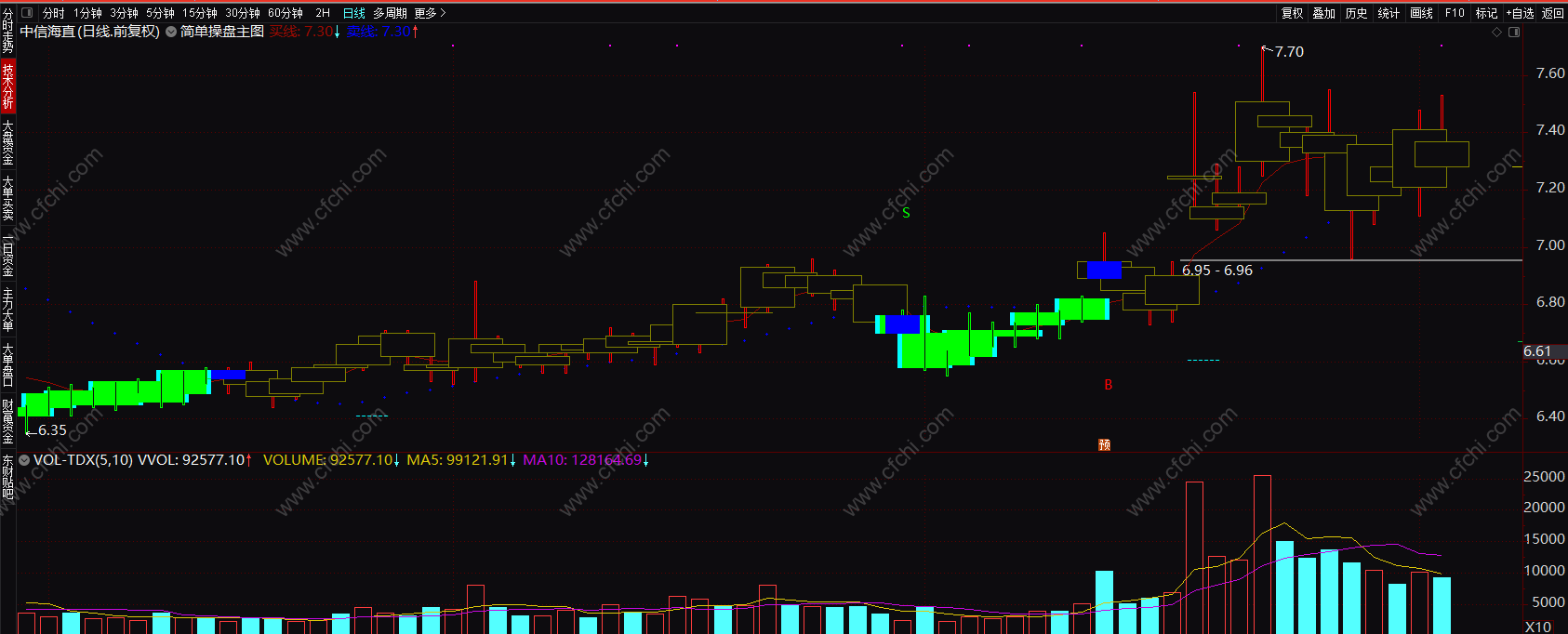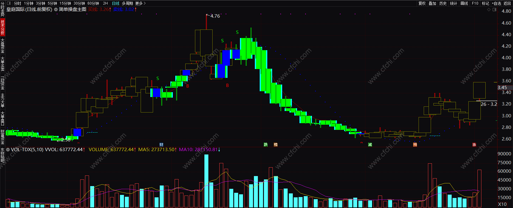 一个包含明确B、S点的指标,我用了多年了,一般情况下在低位出现B点,底部可能性较大,同样在高位出现S点,顶部可能性较大。