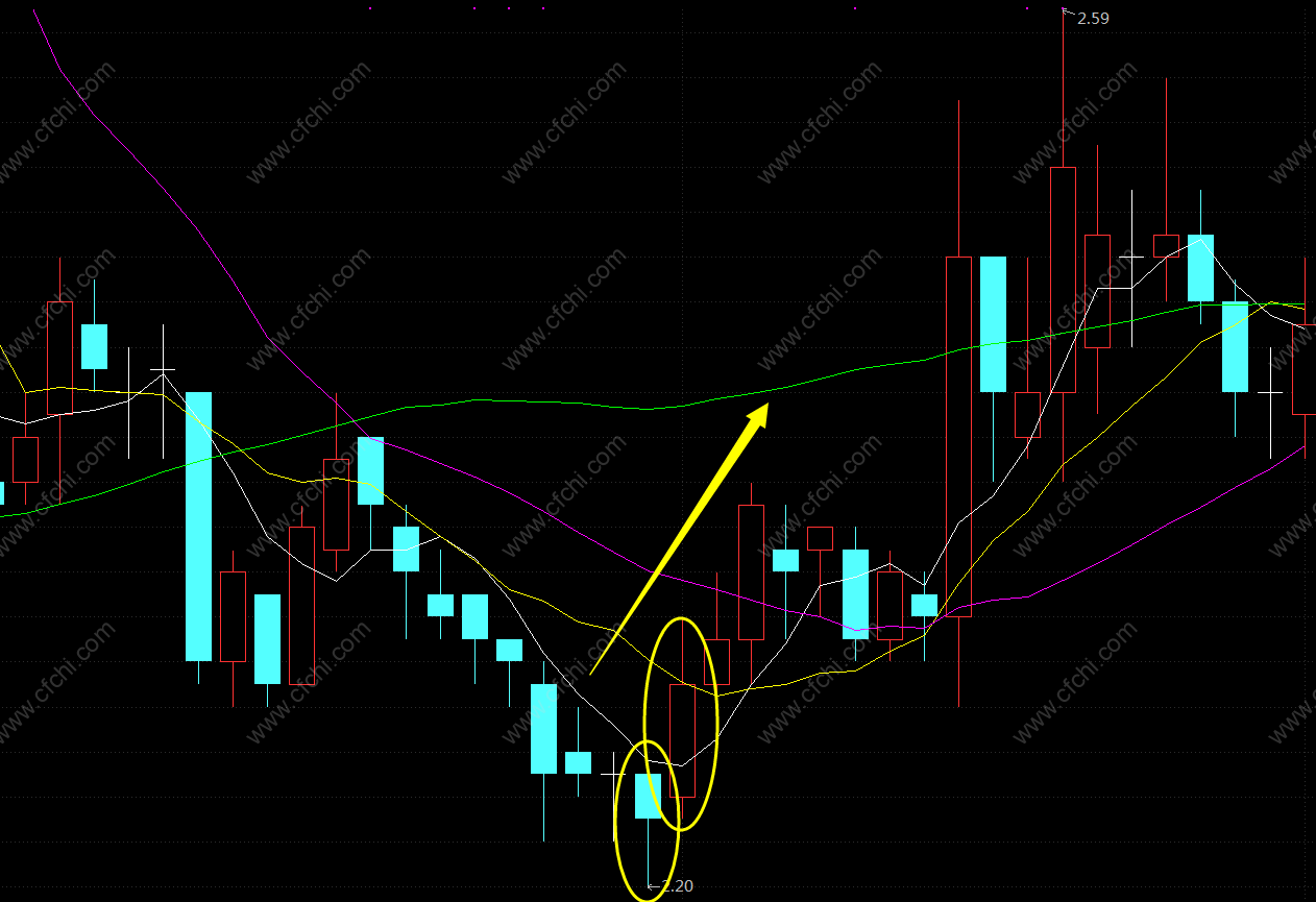 2、有时在锤子线出现后,股价会再次回落。若股价不跌破锤子线的低点,就说明二次探底成功。当股价再次回升并越过锤子线实体时,构成买入时机。