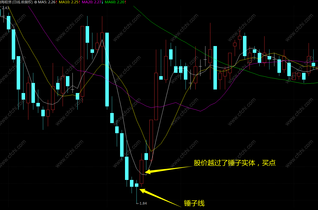 锤子线出现后的下一个交易日,若收盘价能够越过锤子线实体,则构成买点。