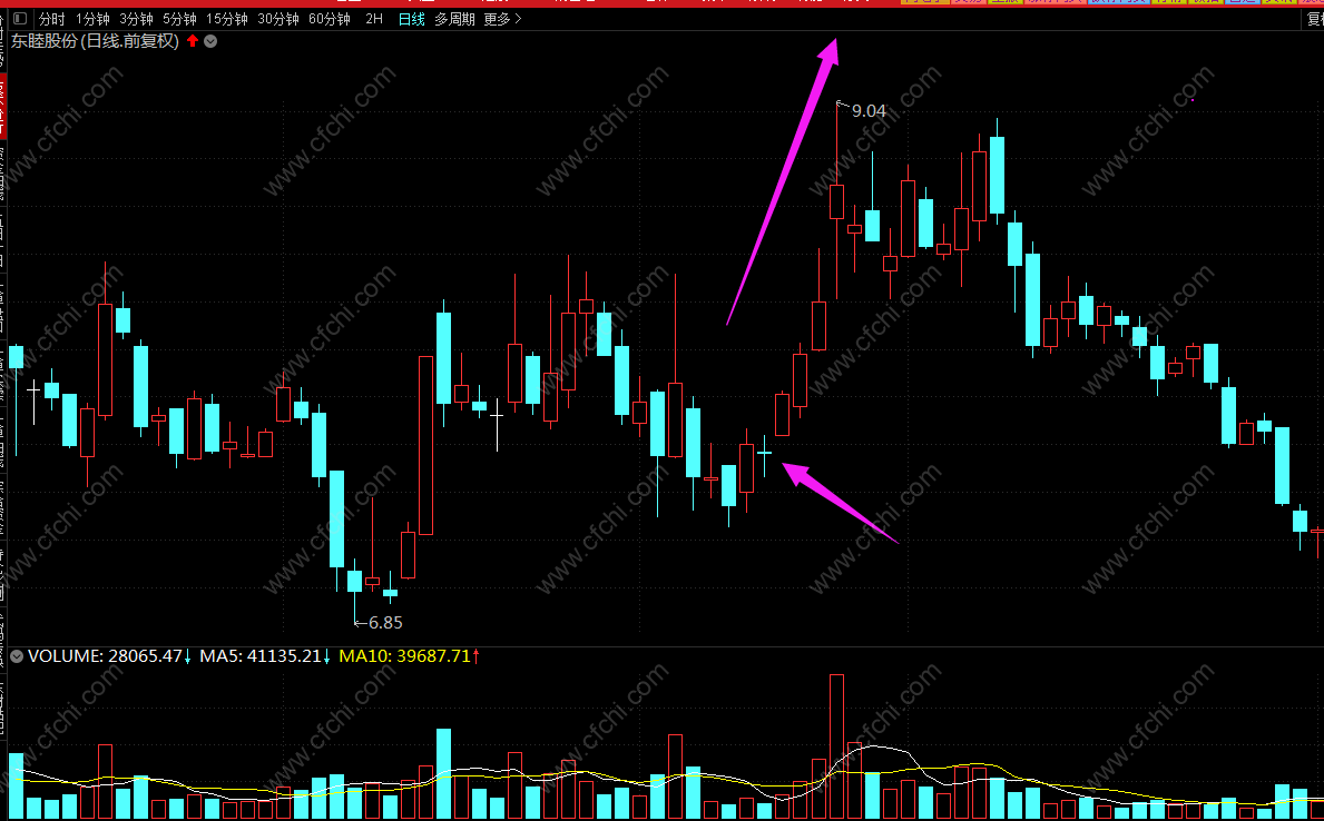 2、大跌之后的十字星出现后,第二个交易日股价如果马上跌破十字星最低点价位,则表示空方重新获取主动。这时投资者不能急于买入股票,应该继续持币观望;