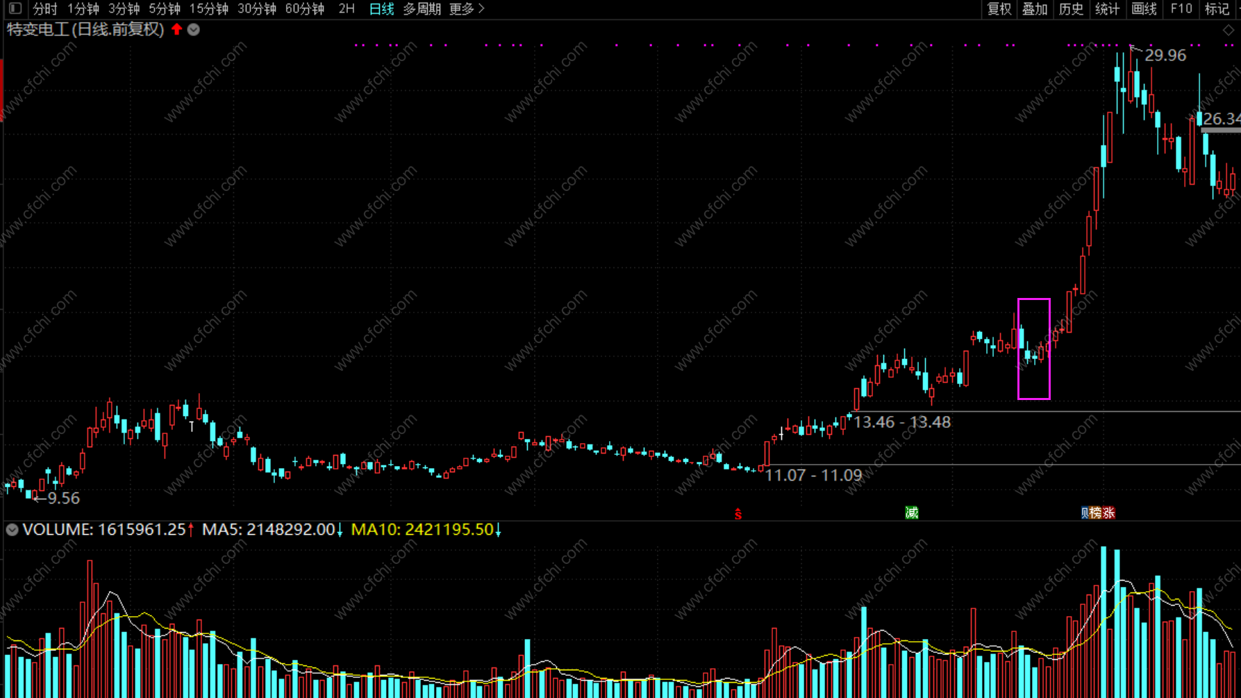 3、三根阴线的下影线越长,特别是第三根阴线的下影线越长,则该形态的看涨信号越强烈。