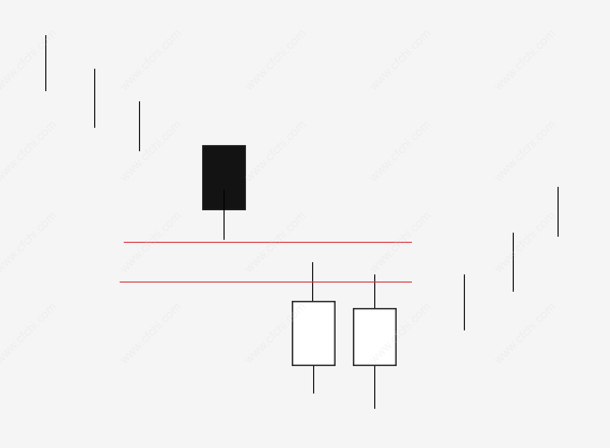 2、出现第一根阳线之后,股价再次跳空低开,但到收盘时多方完全收复开盘的跌幅,形成另一根阳线,该阳线的开盘价和收盘价均与前根阳线大致相等。