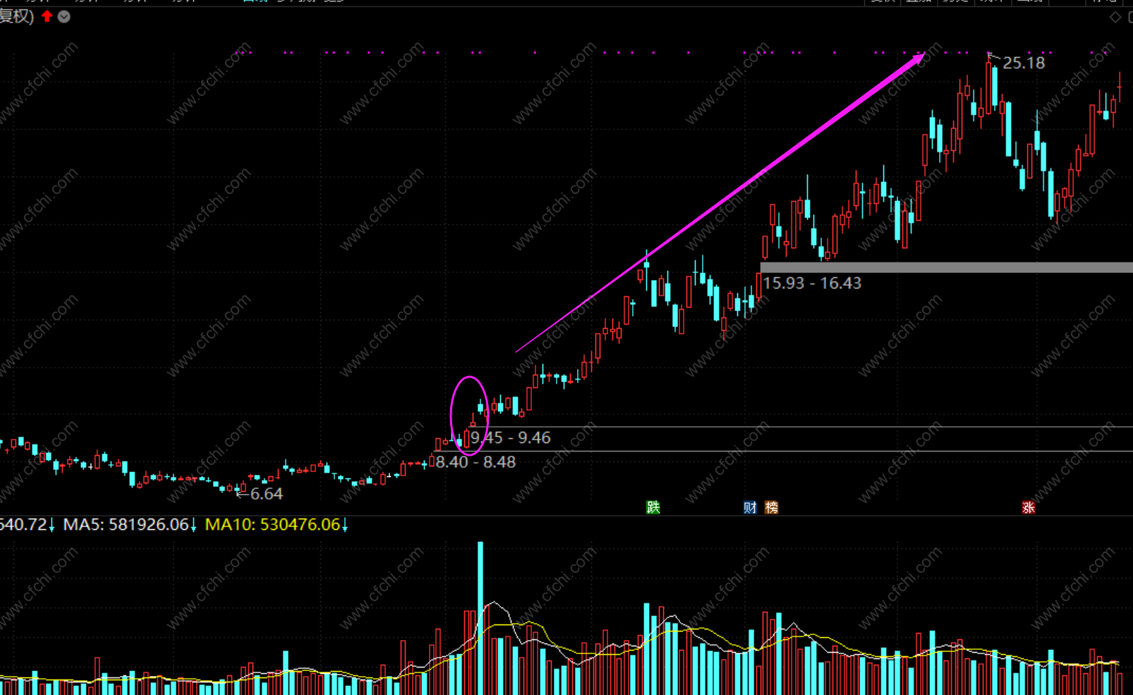 3、在阳线出现的时候,成交量往往放大。