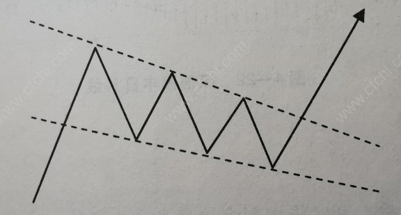 2、这里的楔形左高右低,呈下降趋势。