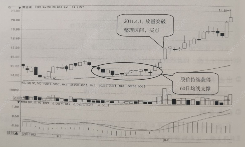 股价可能在60日均线位置获得支撑后马上上涨,也可能在60日均线位置整理一段时间后才上涨。因此投资者最好等到股价完全脱离60日均线位置后才买入股票。