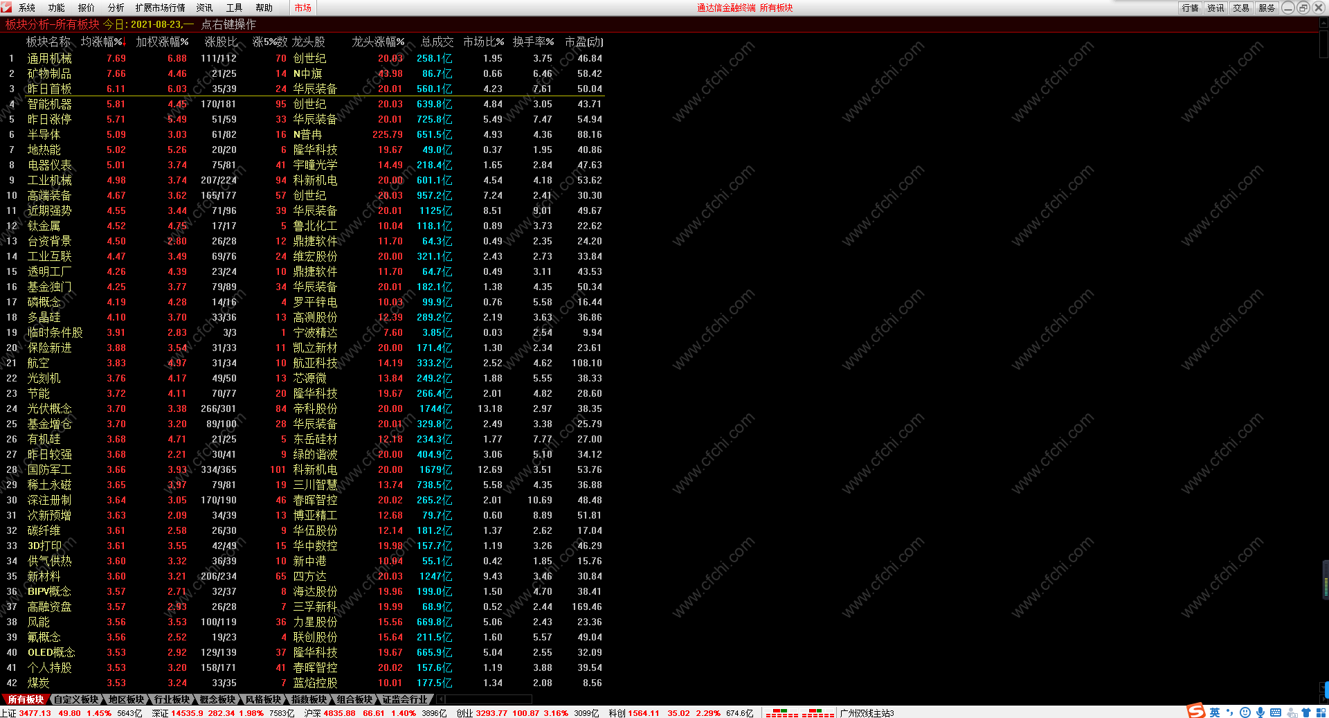 报表分析:可以看到每天热门板块的涨跌幅排名