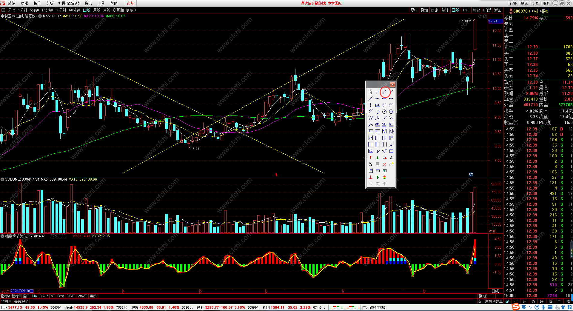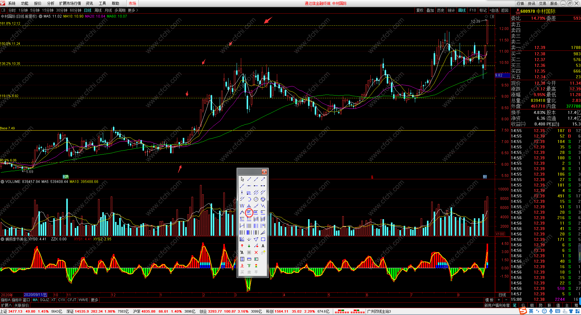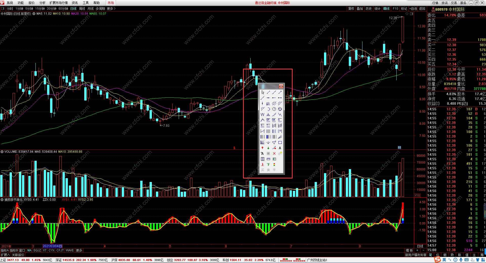 画线工具可以使用来辅助分析个股,在个股技术分析分析点击画线(快捷方式ATL + F12)可调用出画线工具