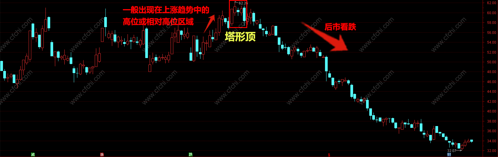 塔形顶一般出现在上涨趋势中的高位或相对高位区域,在高位或是相对高位出现是一种见顶信号,后市看跌,可参考卖出,如果在大幅涨跌之后之后出现,则可靠性更强。