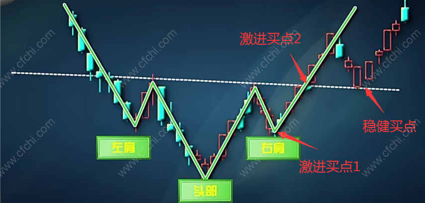 头肩底形态形成后,出现回抽是买入的好时机,或在突破颈线当天收市前买入,但是要注意暂时套牢和假突破的风险,也可以在右肩底形成的底部买入,适合更为激进的投资者。