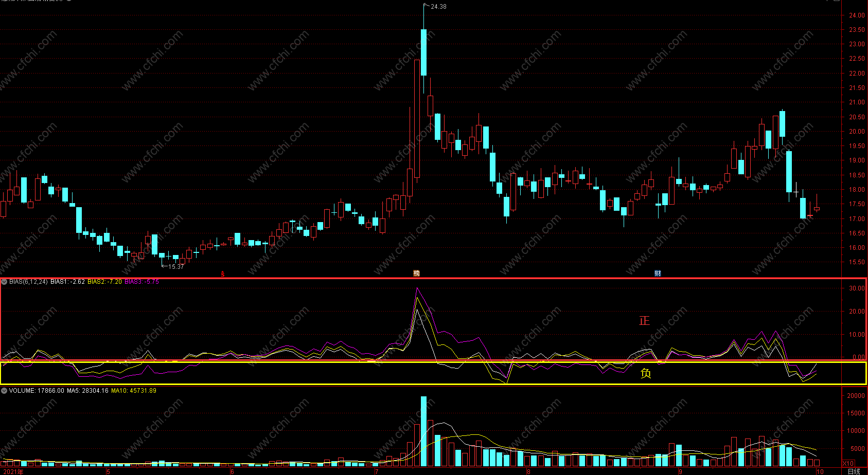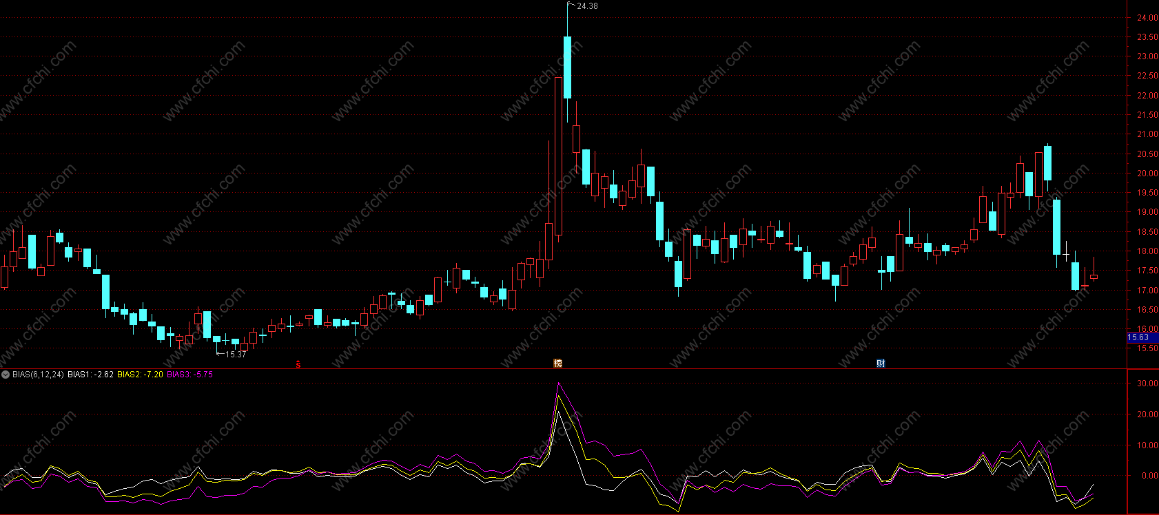 打开任意一只股票,在键盘上输入BIAS就可以看到这个指标