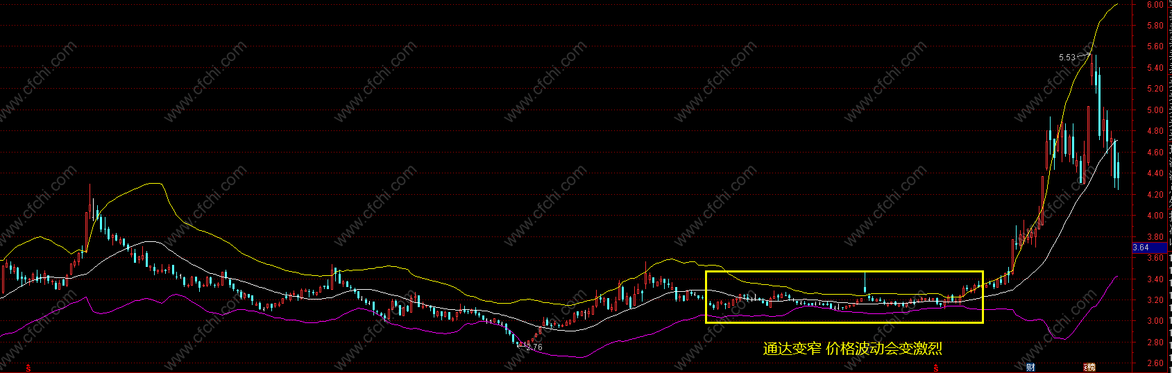 当股价波动较小时,布林线的轨道会变窄,当股价波动较大时,布林线的轨道会变宽