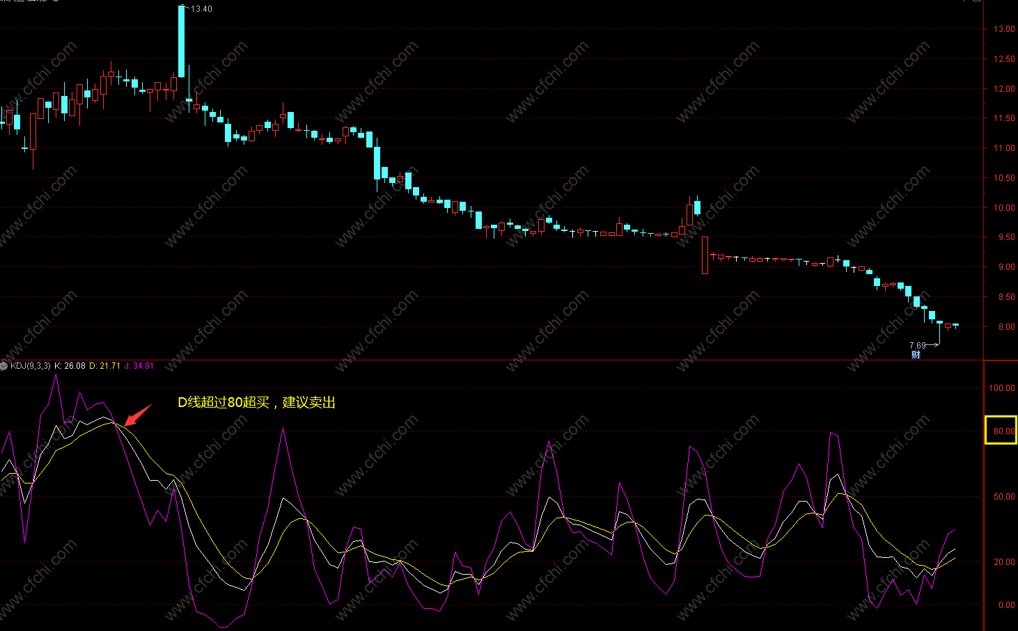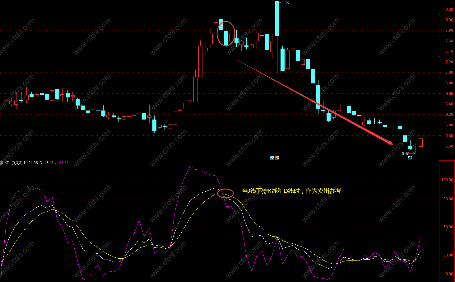 ②当J线自上而下穿破K线和D线时,作为卖出参考