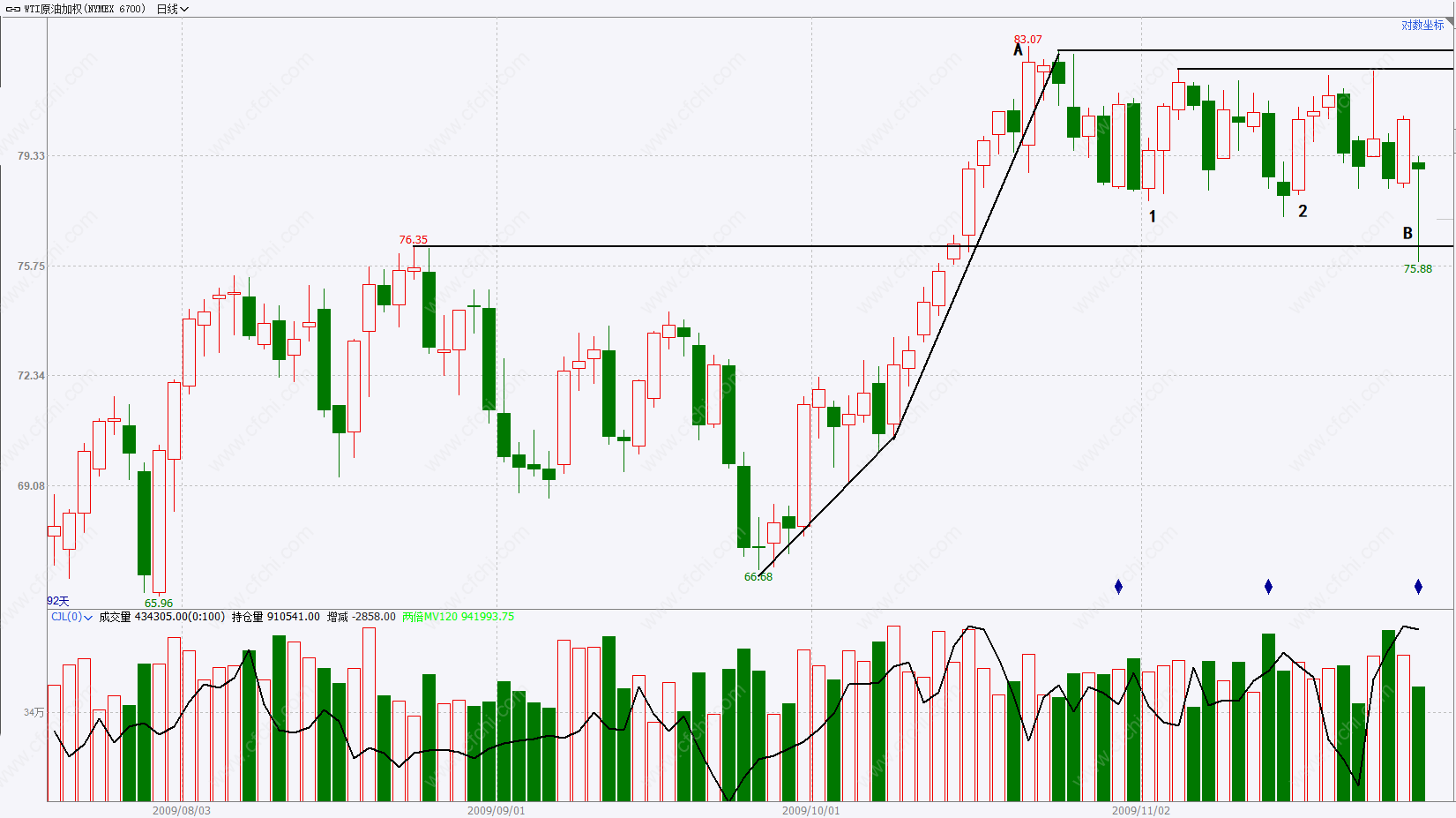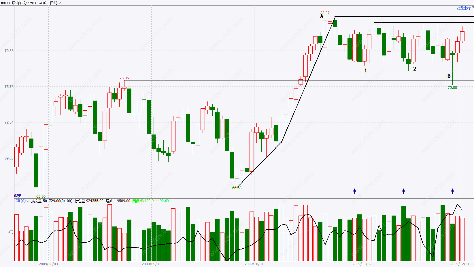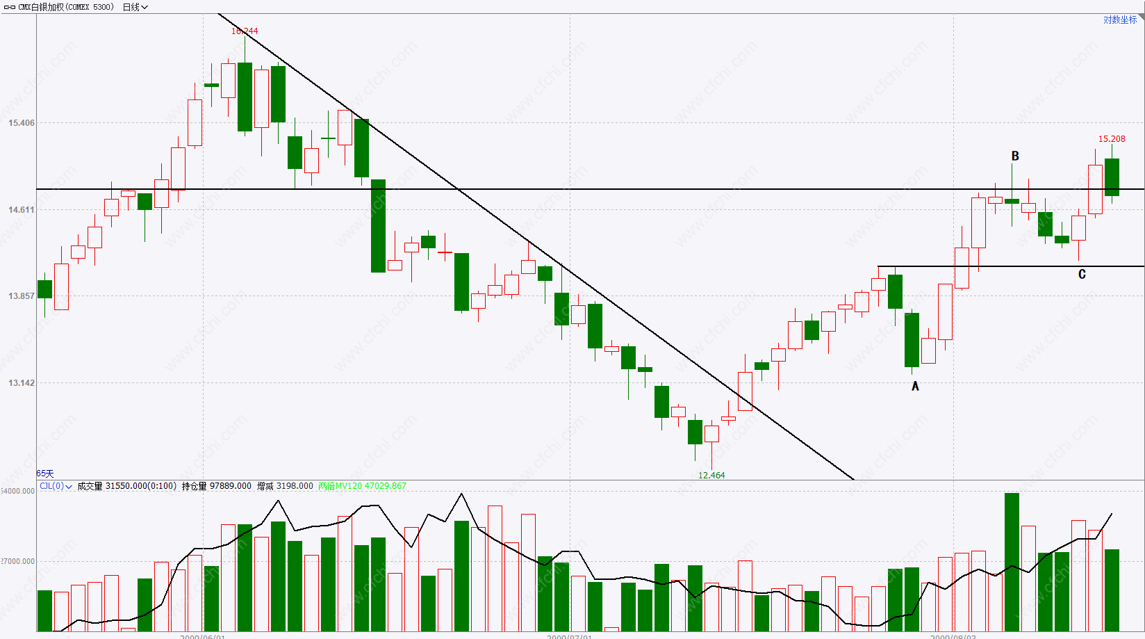 如图1.1所示这是2009年8月份期间的美国白银期货日线。