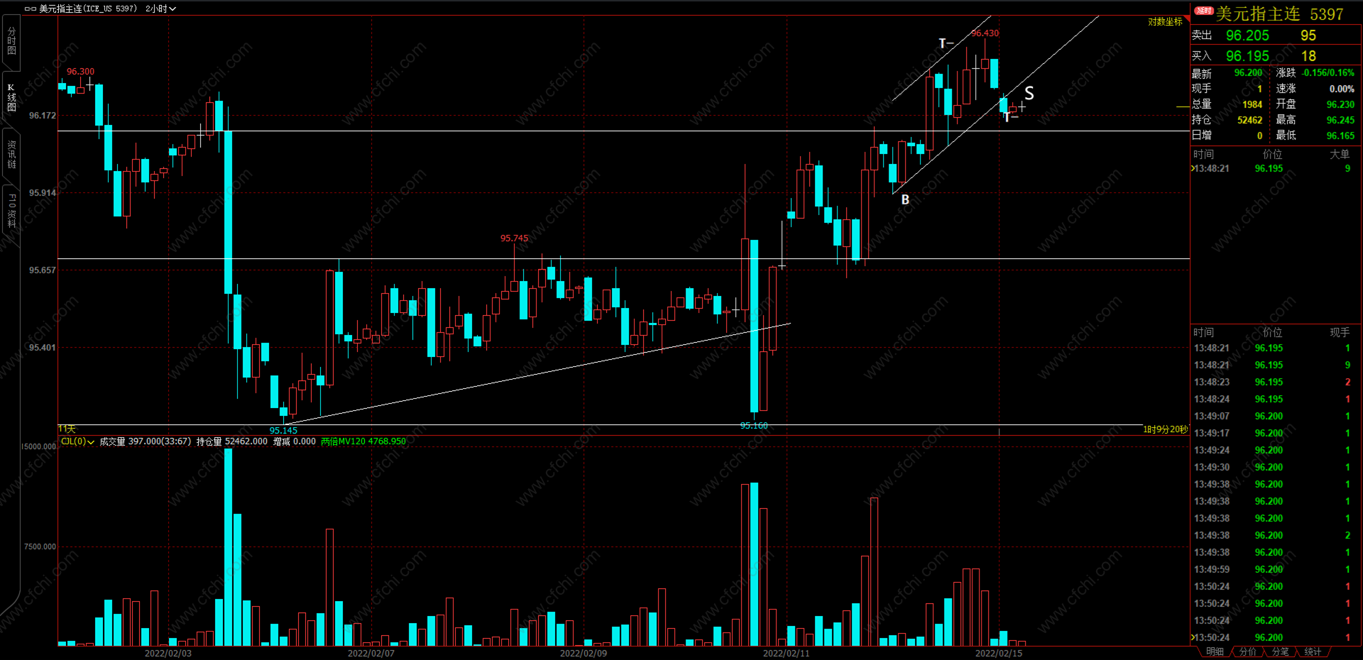 如图4,K线11在我减仓之后马上回踩了JOC位置,随后的一波上涨我们看到了明显的突破幅度减小(SOT)的行为,SOT告诉我们上涨可能结束。看到这样的走势后,我们要做好随时离场的准备。K线13跌破短期上升趋势线,减仓。