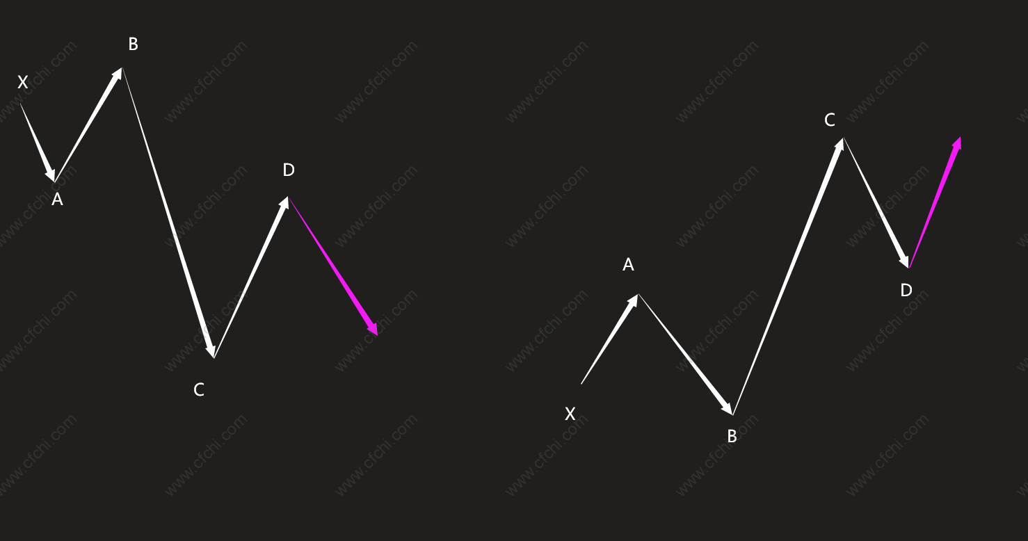 另外,XABC及X之前一段有可能构成鲨鱼形态,即,鲨鱼形态反转成功后,可能会演变为半波形态。