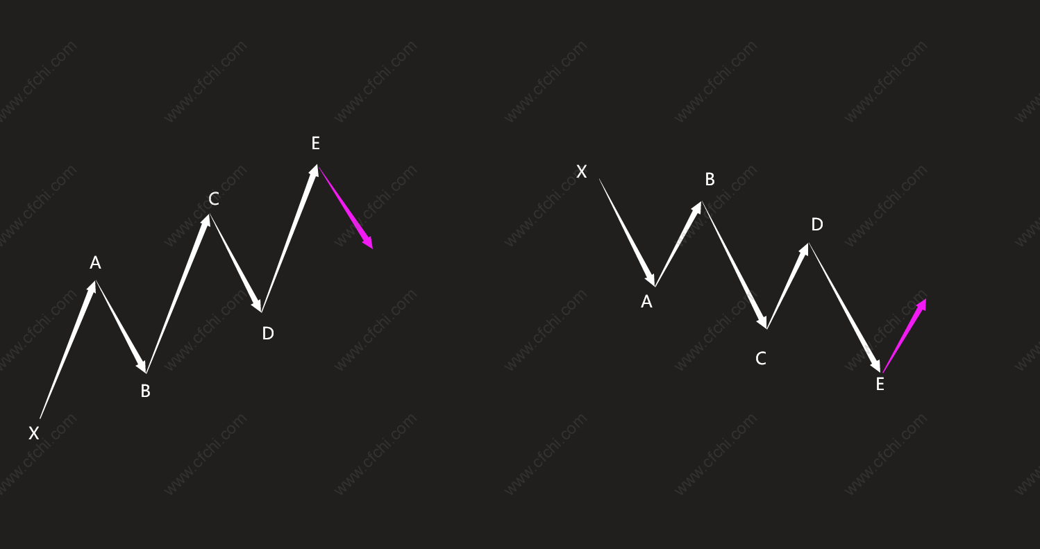 三驱形态是一个六点模型。如其名,三驱形态是有三个推动浪的模型。如果不懂波浪理论,可以不管推动浪。三驱形态看着很复杂,实际上他的比例关系非常简单。因此,这个模型没有必要简化。