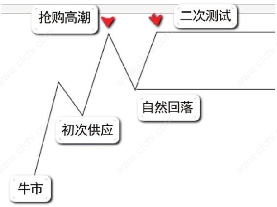 (2)上涨趋势停止,必须经过抢购高潮后的二次测试确认。