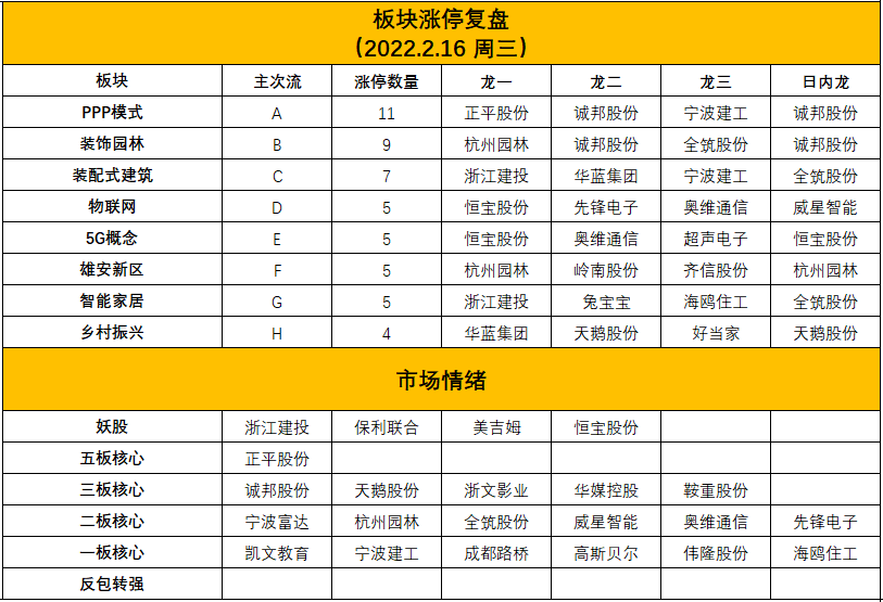 工业母机、装配式建筑、装饰园林、汽车拆解和地下管网概念板块领涨。其中PPP模式、装饰园林、装配式建筑和物联网概念板块涨停家数数量居前。