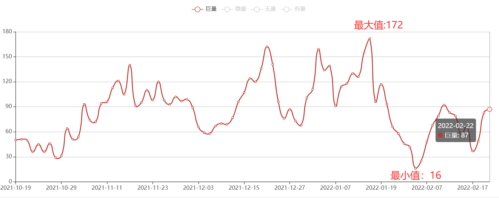 提示:量能指标数值理论上反应主力进攻的个股数量,用于财富池交易系统打板和追涨的重要参考数据源。理论上数值大于100,短线机会较多,小于100,短线机会风险加大。另外可以通过数值曲线变化感知市场的变化过程。