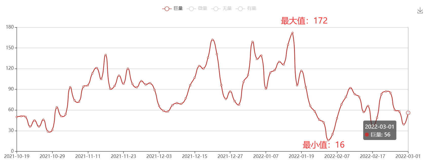 提示:量能指标数值理论上反应主力进攻的个股数量,用于财富池交易系统打板和追涨的重要参考数据源。理论上数值大于100,短线机会较多,小于100,短线机会风险加大。另外可以通过数值曲线变化感知市场的变化过程。