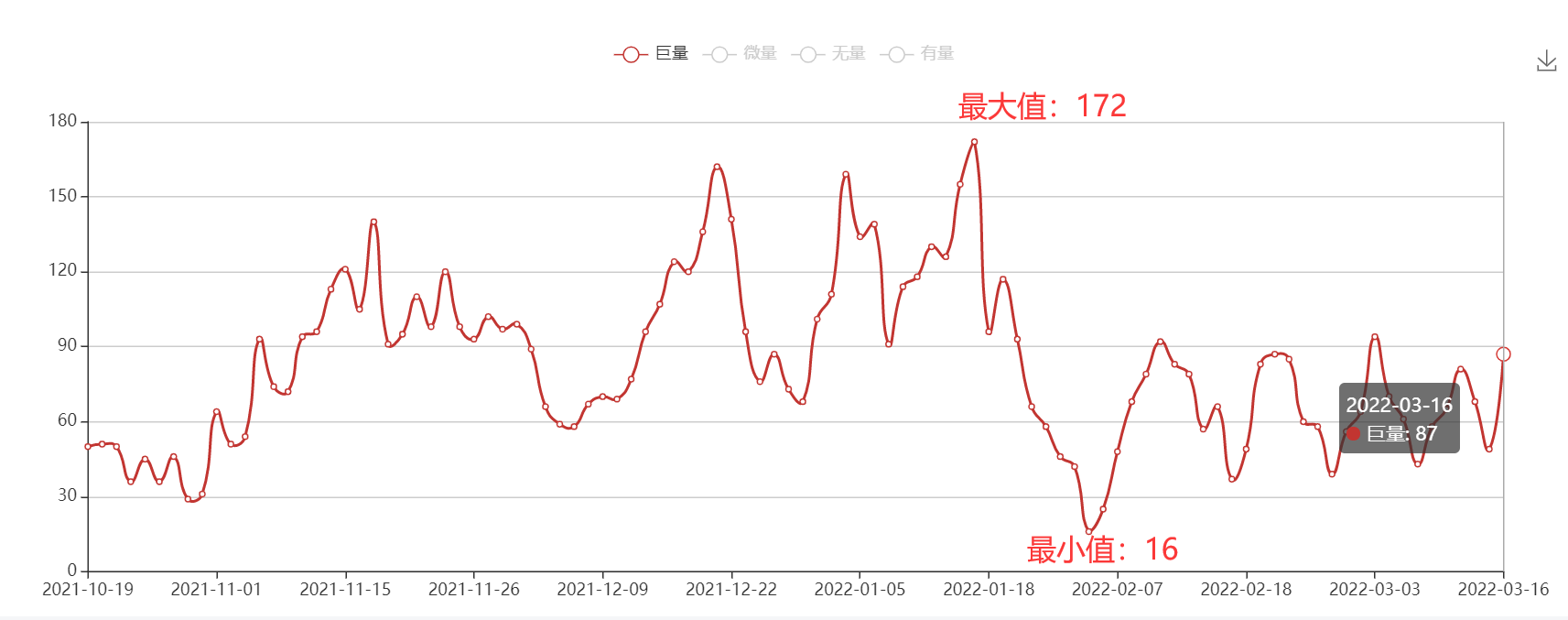 提示:量能指标数值理论上反映主力进攻的个股数量,用于财富池交易系统打板和追涨的重要参考数据源。理论上数值大于100,短线机会较多,小于100,短线机会风险加大。另外可以通过数值曲线变化感知市场的变化过程。