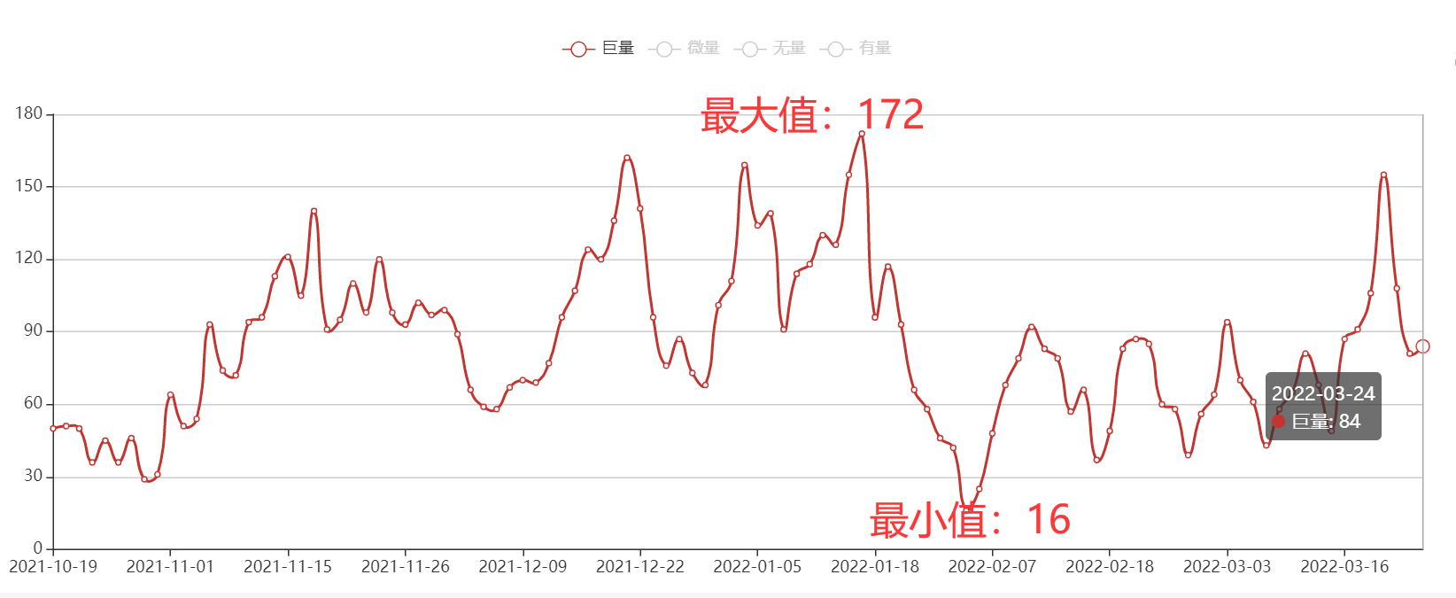 提示:量能指标数值理论上反映主力进攻的个股数量,用于财富池交易系统打板和追涨的重要参考数据源。理论上数值大于100,短线机会较多,小于100,短线机会风险加大。另外可以通过数值曲线变化感知市场的变化过程。