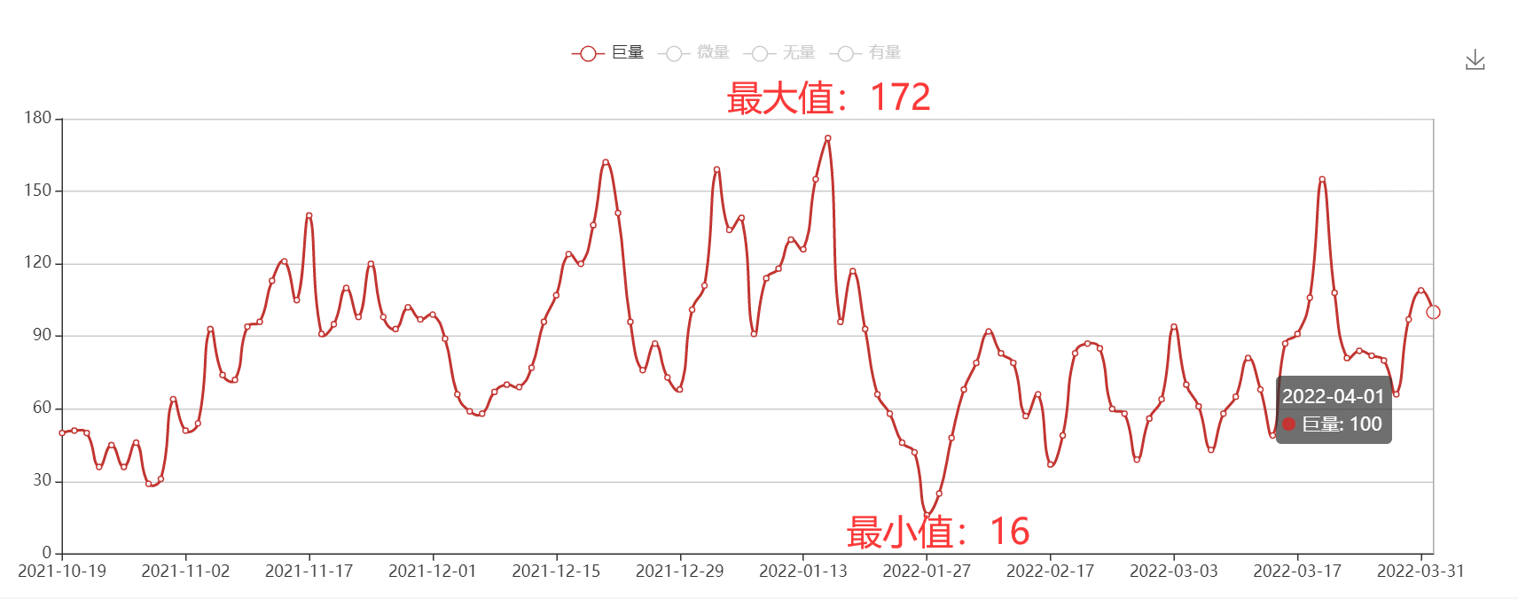提示:量能指标数值理论上反映主力进攻的个股数量,用于财富池交易系统打板和追涨的重要参考数据源。理论上数值大于100,短线机会较多,小于100,短线机会风险加大。另外可以通过数值曲线变化感知市场的变化过程。