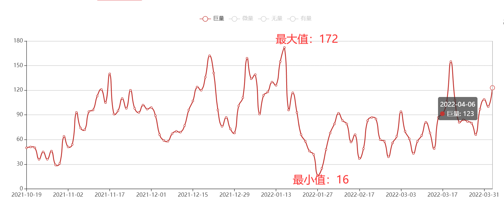 提示:量能指标数值理论上反映主力进攻的个股数量,用于财富池交易系统打板和追涨的重要参考数据源。理论上数值大于100,短线机会较多,小于100,短线机会风险加大。另外可以通过数值曲线变化感知市场的变化过程。