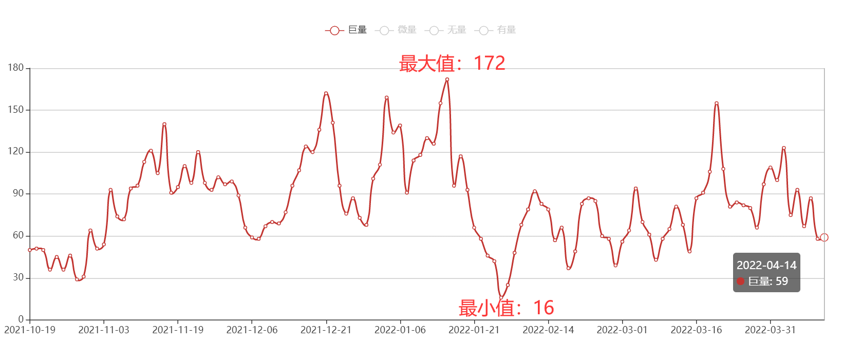提示:量能指标数值理论上反映主力进攻的个股数量,用于财富池交易系统打板和追涨的重要参考数据源。理论上数值大于100,短线机会较多,小于100,短线机会风险加大。另外可以通过数值曲线变化感知市场的变化过程。