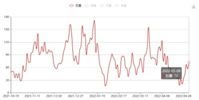 提示:量能指标数值理论上反映主力进攻的个股数量,用于财富池交易系统打板和追涨的重要参考数据源。理论上数值大于100,短线机会较多,小于100,短线机会风险加大。另外可以通过数值曲线变化感知市场的变化过程。